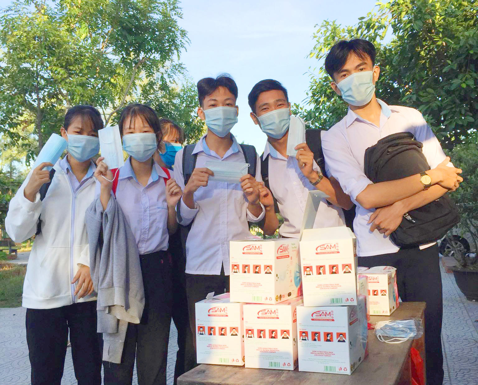 Báo Pháp luật Việt Nam phối hợp với Công ty Saigonmit tặng hơn 1.200 chiếc khẩu trang cho các em học sinh