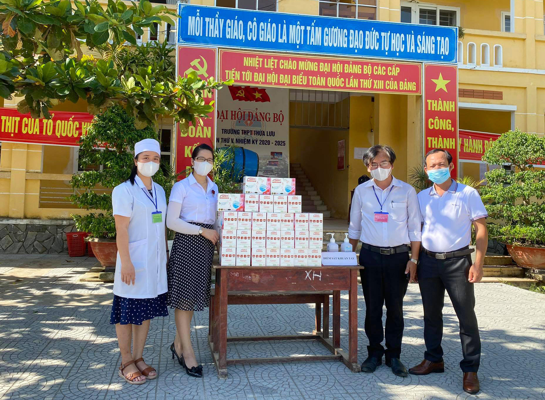 (PLVN) - Để đảm bảo sức khỏe cho các em học sinh trong kỳ thi tốt nghiệp THPT năm 2020, Đại diện Văn phòng Báo Pháp luật Việt Nam khu vực Bình Trị Thiên phối hợp với Công ty Cổ phần Thiết bị Y tế và Kỹ thuật hình ảnh Saigonmit đã trao tặng hơn 1.200 chiếc khẩu trang cho các em học sinh trường THPT Thừa Lưu (huyện Phú Lộc, Thừa Thiên Huế).