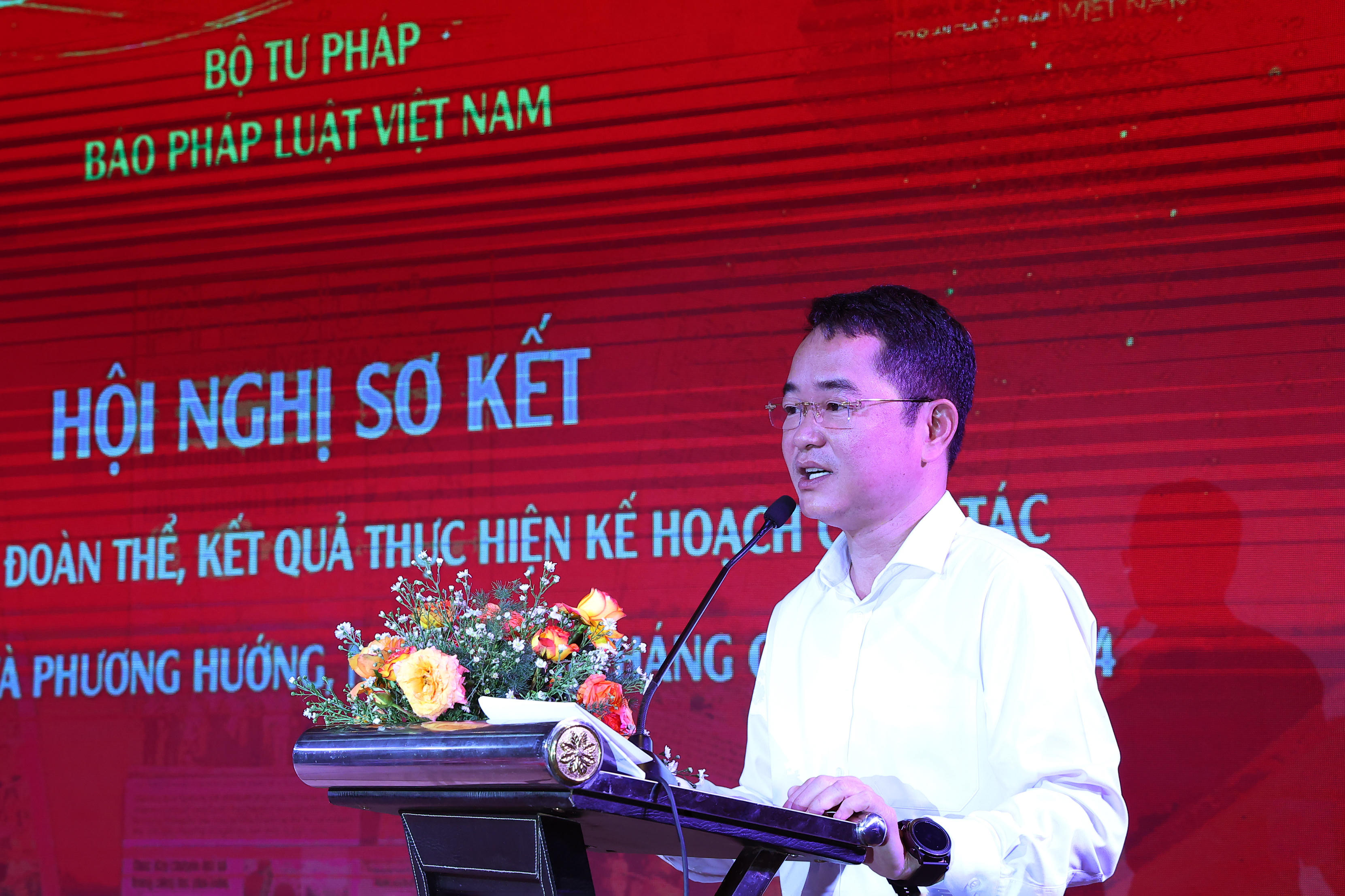 Báo cáo tại Hội nghị, TS. Vũ Hoài Nam - Bí thư Đảng ủy, Tổng Biên tập Báo PLVN cho biết: 6 tháng đầu năm 2024, Báo PLVN đã thực hiện đúng các chức năng của cơ quan ngôn luận của Bộ, Ngành Tư pháp và đầy đủ các nhiệm vụ trong Chương trình công tác năm 2024, hoàn thành các nhiệm vụ khác do Bộ trưởng Bộ Tư pháp giao, đạt kết quả đáng ghi nhận nhờ sự chỉ đạo sát sao của Ban Cán sự, Lãnh đạo Bộ, sự nỗ lực của Ban Biên tập và tập thể viên chức, người lao động của Báo.