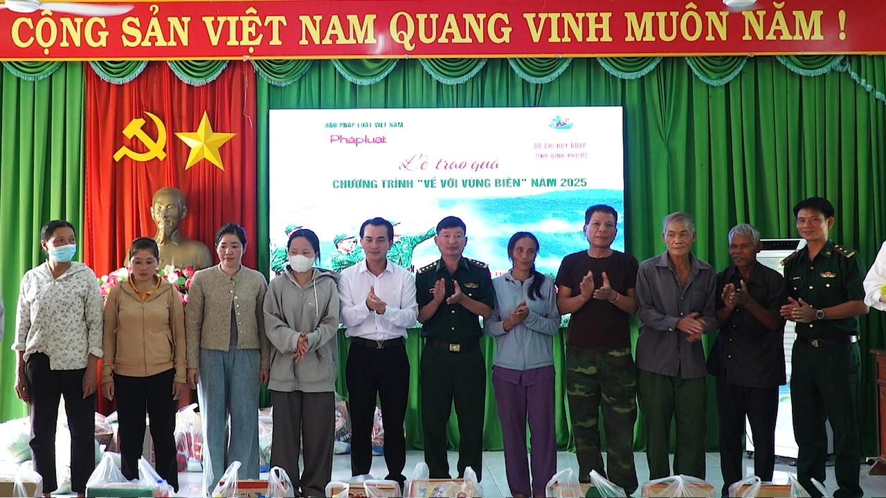 (PLVN) - Tiếp nối chuỗi hoạt động trong khuôn khổ chương trình “Về với vùng biên”, sáng ngày 7/6 tại tỉnh Bình Phước, Báo Pháp luật Việt Nam phối hợp cùng Bộ Chỉ huy Bộ đội Biên phòng ( BĐBP) tỉnh Bình Phước tiến hành trao tặng 150 phần quà nghĩa tình đến với bà con có hoàn cảnh khó khăn tại các xã thuộc 3 huyện biên giới Bù Đốp, Bù Gia Mập và Lộc Ninh, tỉnh Bình Phước.