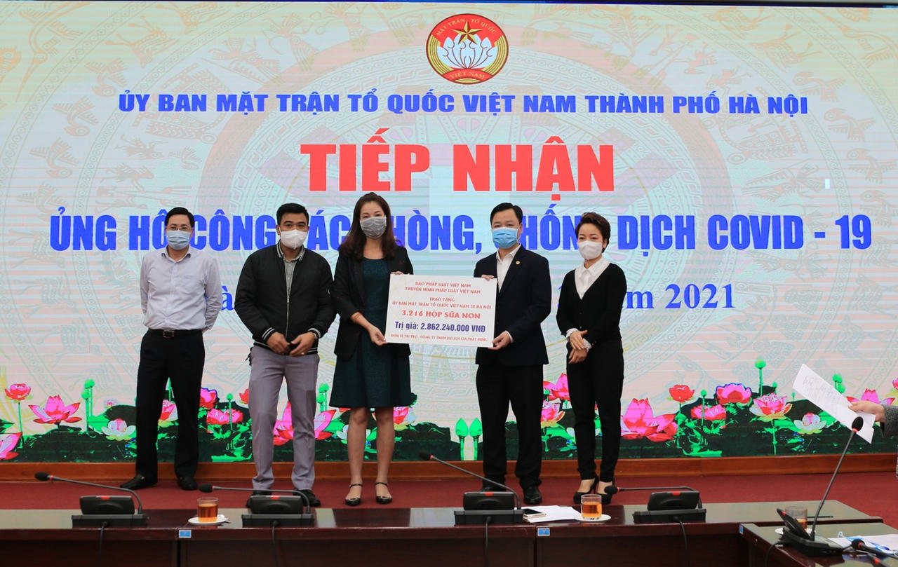 Báo Pháp luật Việt Nam đã trao tặng Ủy ban MTTQ Việt Nam thành phố Hà Nội 3.216 hộp sữa non Úc do Công ty TNHH Dịch vụ Du lịch Gia Phát Hưng tài trợ trị giá 2.862.240.000 đồng. Các đồng chí Phó Chủ tịch Ủy ban MTTQ Việt Nam thành phố Hà Nội: Đàm Văn Huân, Nguyễn Sỹ Trường tiếp nhận ủng hộ.