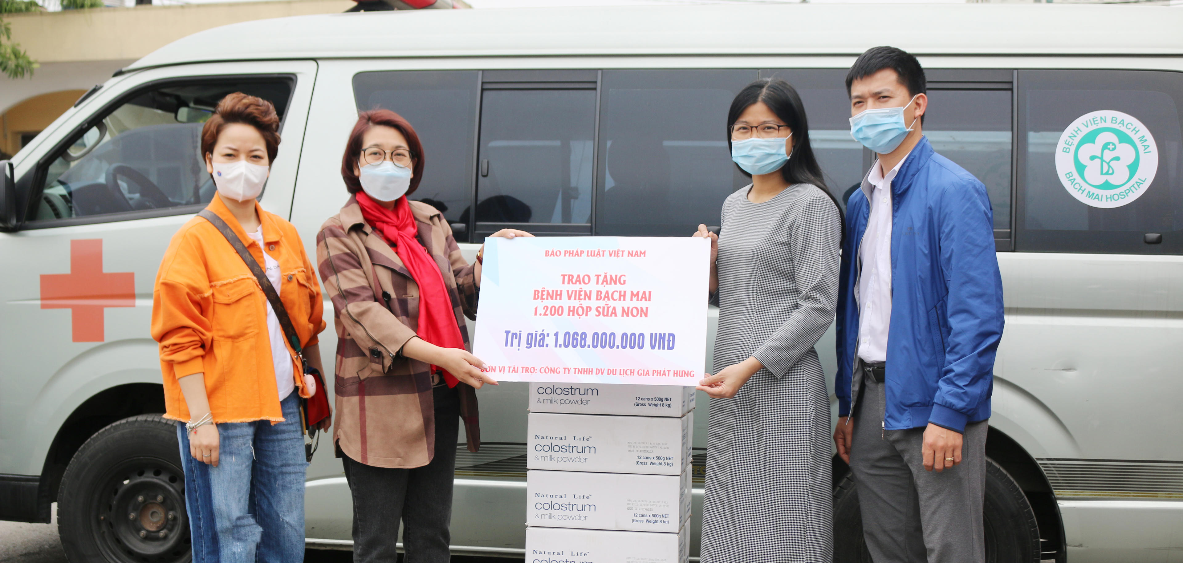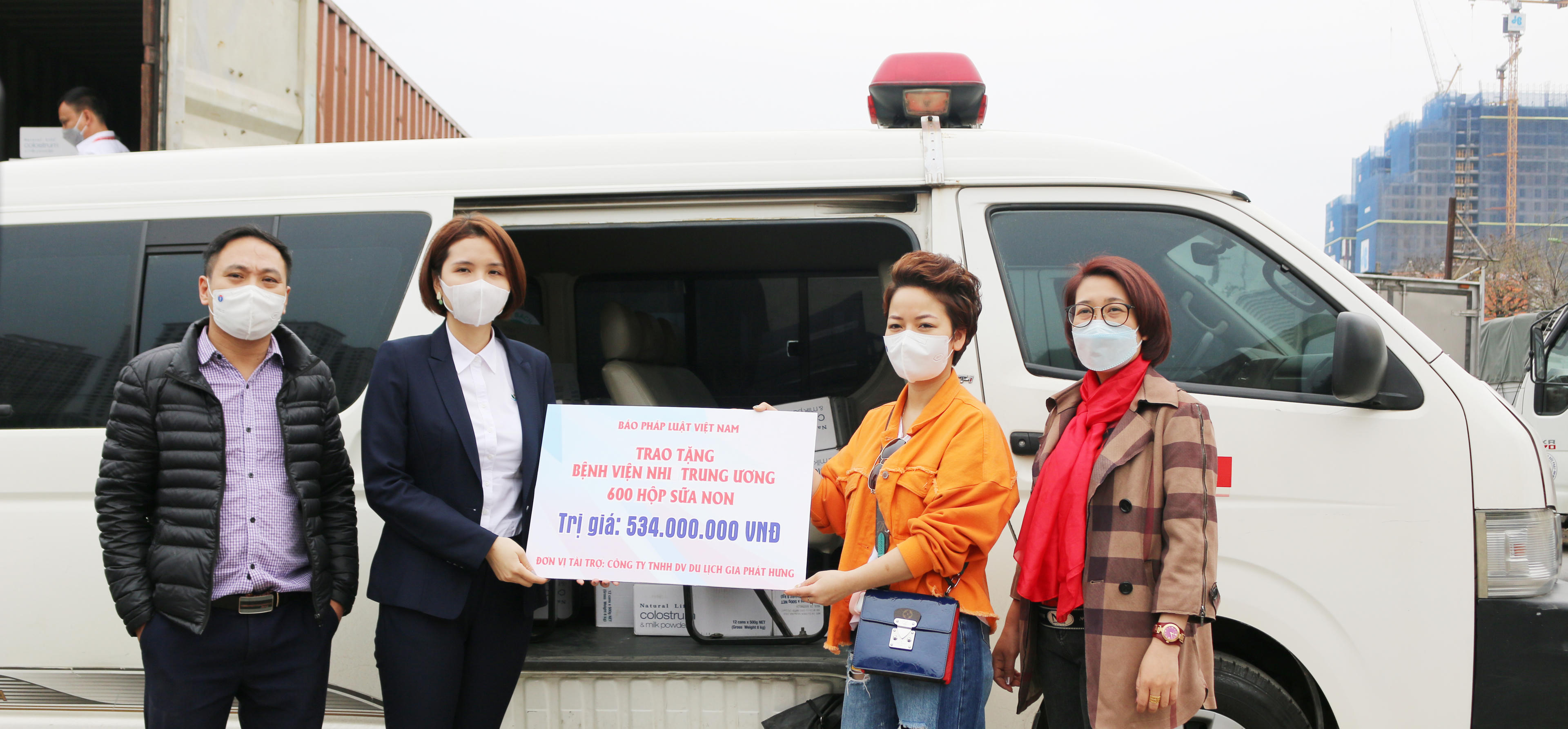 Nhân dịp này, Báo Pháp luật Việt Nam cũng xin gửi lời cảm ơn tới nhà tài trợ là Công ty TNHH Dịch vụ Du lịch Gia Phát Hưng đã tài trợ sữa non và sự đồng hành của Công ty Cổ phần Vinalines Logistics đã vận chuyển miễn phí toàn bộ hơn 6 tấn hàng (sữa non) từ Sài Gòn ra Hà Nội.