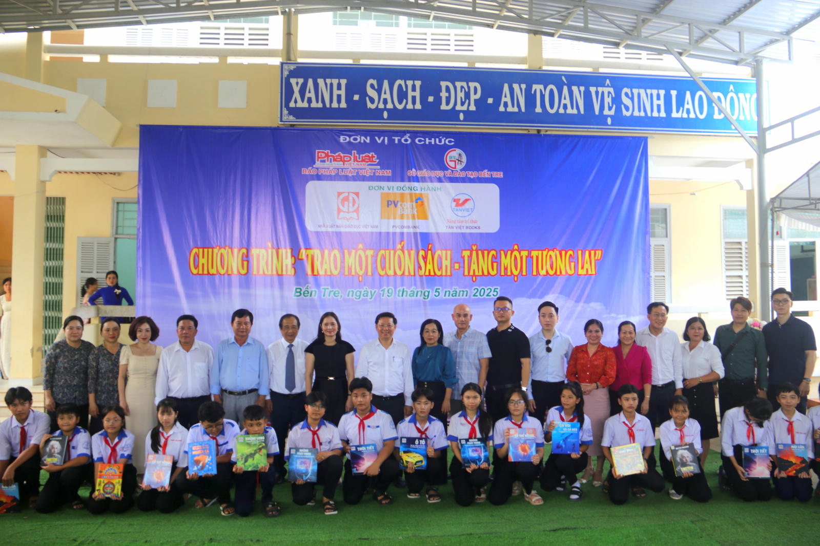 (PLVN) - Ngày 19/5, tại huyện Mỏ Cày Nam (tỉnh Bến Tre), Báo Pháp luật Việt Nam phối hợp Sở GD&ĐT tỉnh Bến Tre tổ chức Chương trình “Trao một cuốn sách - Tặng một tương lai”.