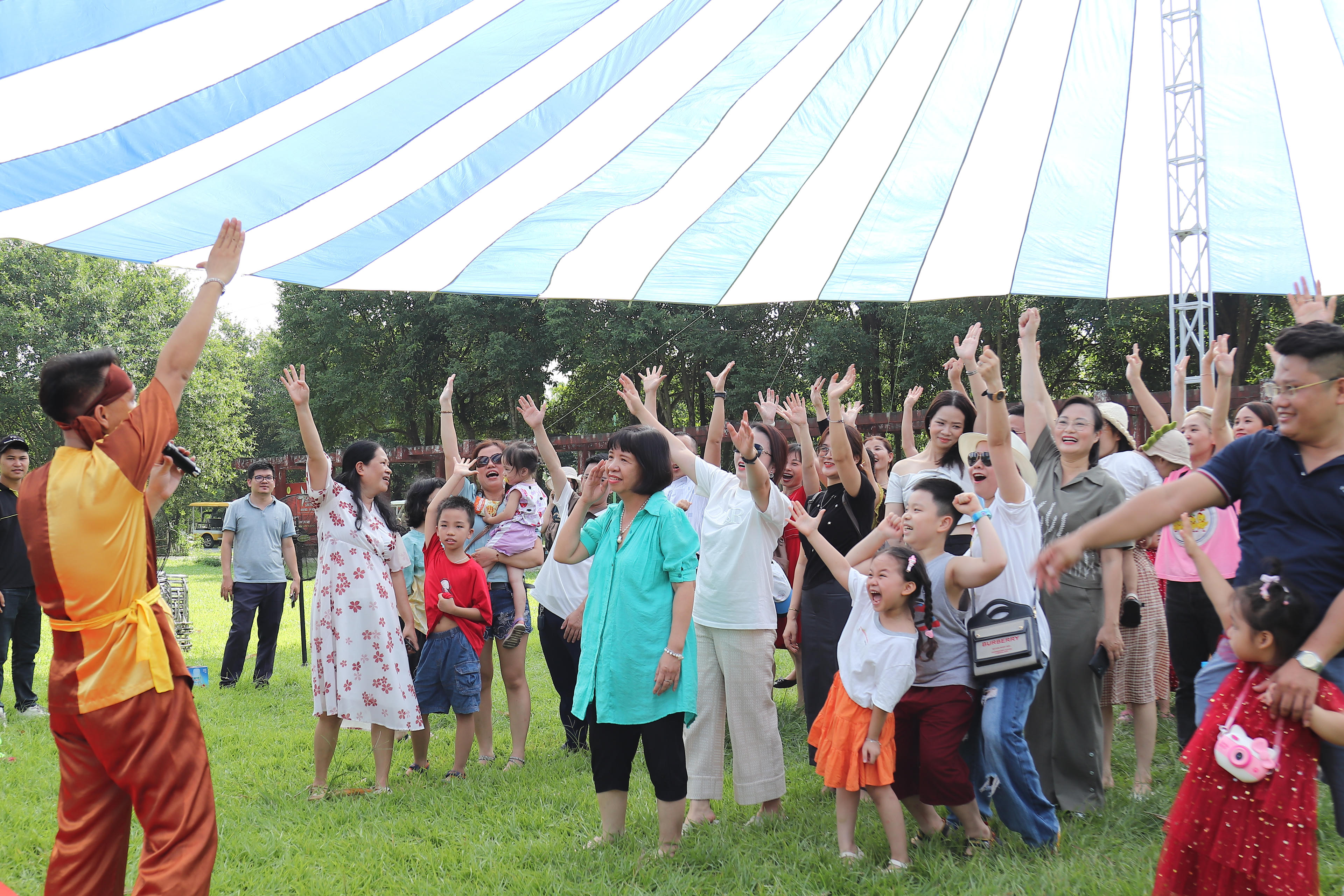 "Hôm nay mệt nhưng rất vui vì được tham gia nhiều trò chơi khác nhau cùng các bạn và các cô, chú. Vui nhất là trò chơi đua ngựa và xem múa khỉ, con cũng được gặp chú Cuội, chị Hằng, Bạch Tuyết, Phù thuỷ", bé Châu Anh (6 tuổi) nói.