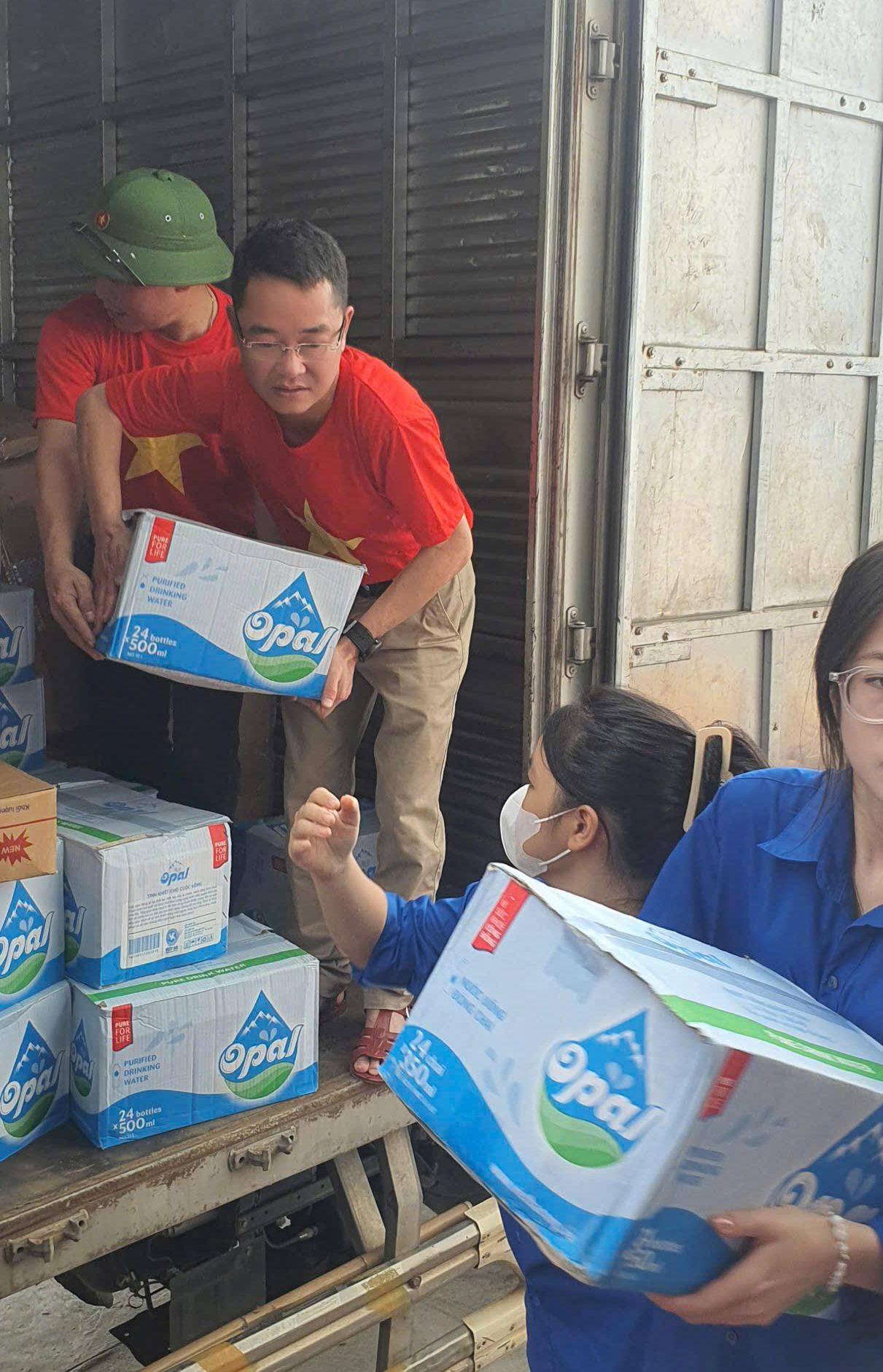 Tổng biên tập Vũ Hoài Nam trực tiếp vận chuyển nước trao tặng bà con tỉnh Yên Bái. |