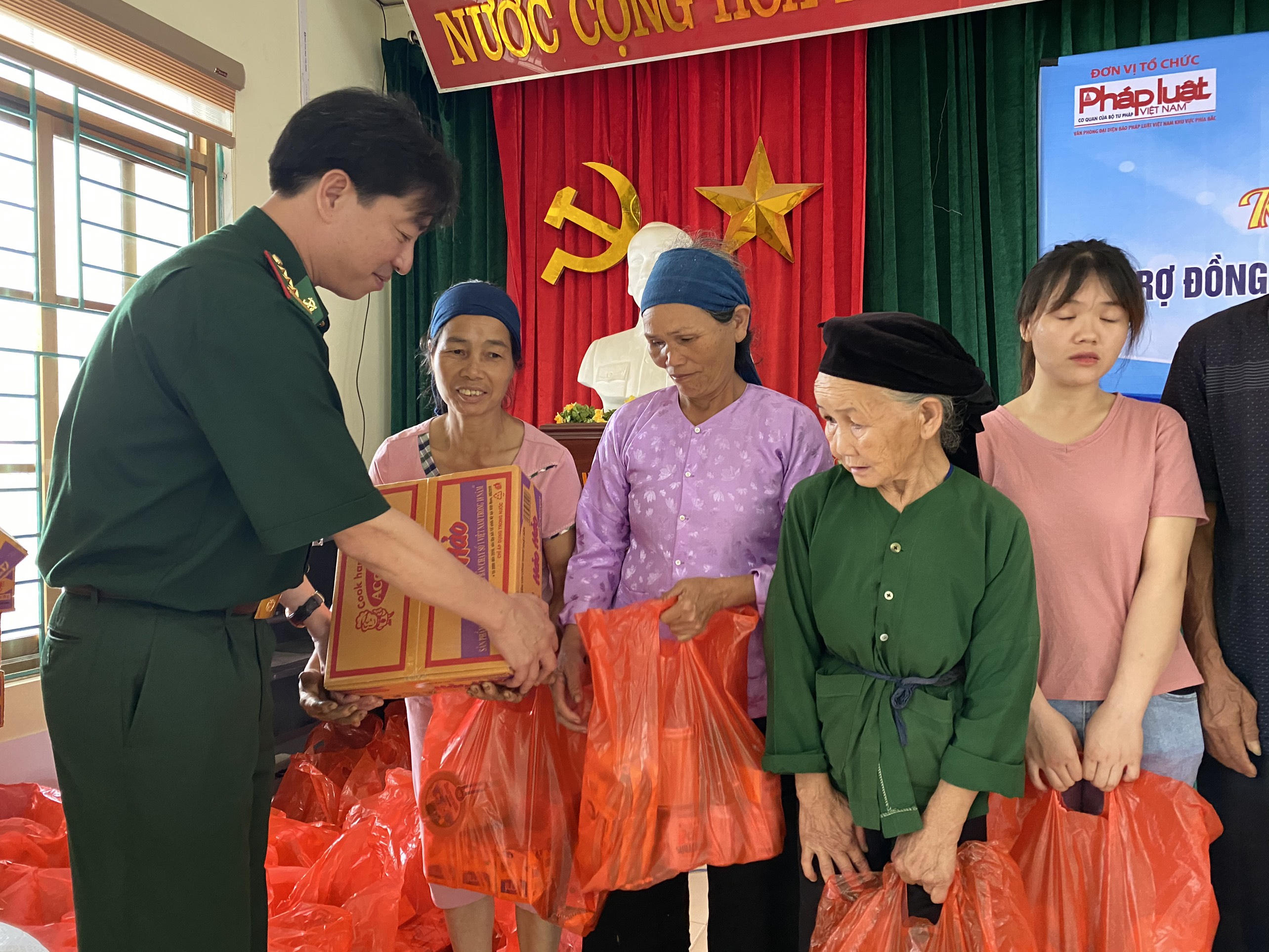 Tại trụ sở UBND thị trấn Trà Lĩnh, Văn phòng Báo PLVN khu vực phía Bắc phối hợp cùng Đồn Biên phòng CK Trà Lĩnh đã tiến hành trao tận tay 100 suất quà cho các hộ gia đình khó khăn. Mỗi hộ dân được nhận một suất quà, bao gồm lương thực và các vật phẩm thiết yếu như: gạo, mì tôm, bột ngọt, bột canh i-ốt, sữa bột dinh dưỡng tăng cường sức khỏe, thuốc bổ...
