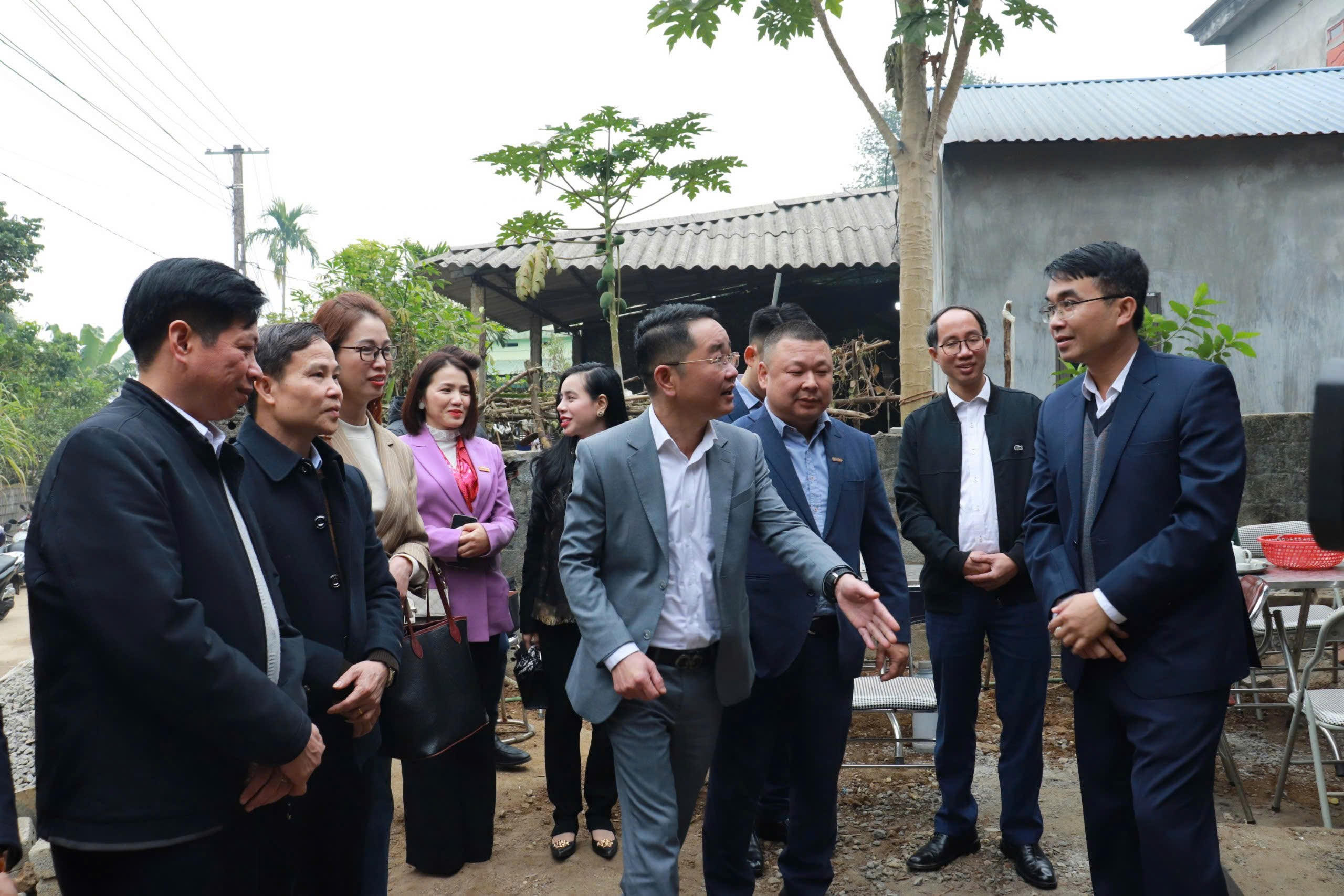 TS Vũ Hoài Nam, đoàn công tác cùng lãnh đạo huyện Kim Bôi, chính quyền xã Vĩnh Đồng, xã Xuân Thuỷ chụp hình lưu niệm tại “Mái ấm Tư pháp”. |