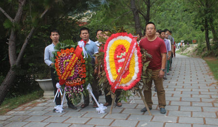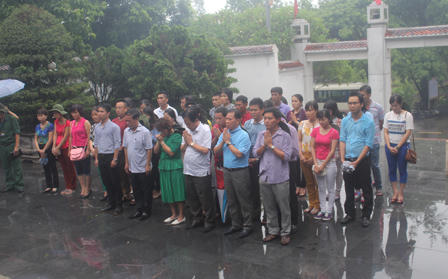 | Đoàn công tác thành kính trước mộ phần của 10 nữ liệt sỹ Ngã ba Đồng Lộc |