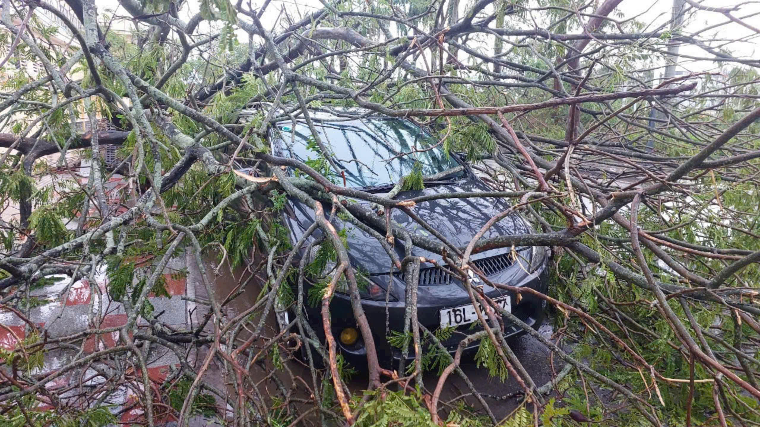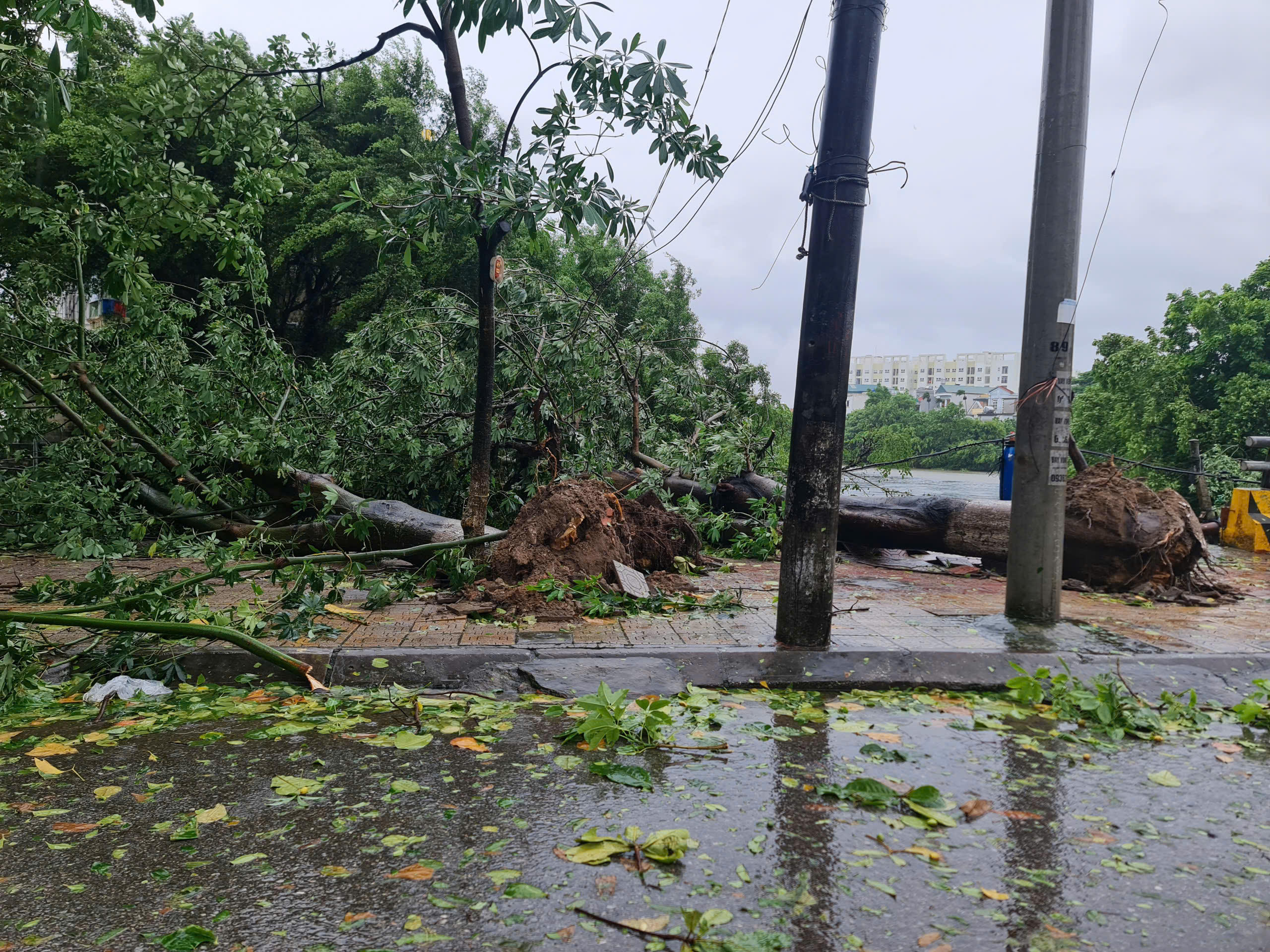Rất nhiều cây lớn bị gió bão quật đổ bên đường phố Hải Phòng: