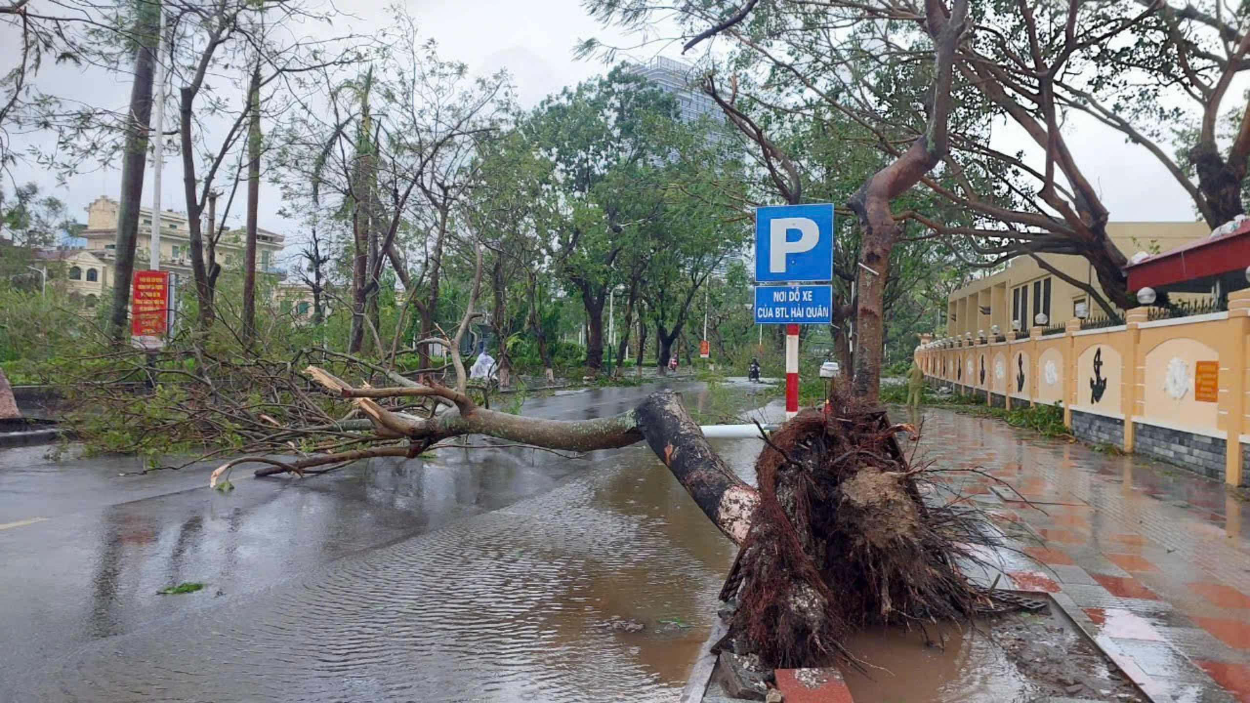 TP Hải Phòng có nhiều cây xanh, biển quảng cáo bị gió hất đổ. Nhiều nhà dân tốc mái tôn. Chính quyền địa phương khuyến cáo người dân hạn chế ra đường trước 20h ngày 7/9 để đảm bảo an toàn.