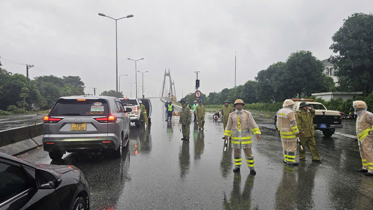 Lực lượng chức năng đã có mặt tại cầu Bính (huyện Thuỷ Nguyên) để tạm dừng các phương tiện giao thông qua cầu vào thời điểm bão.