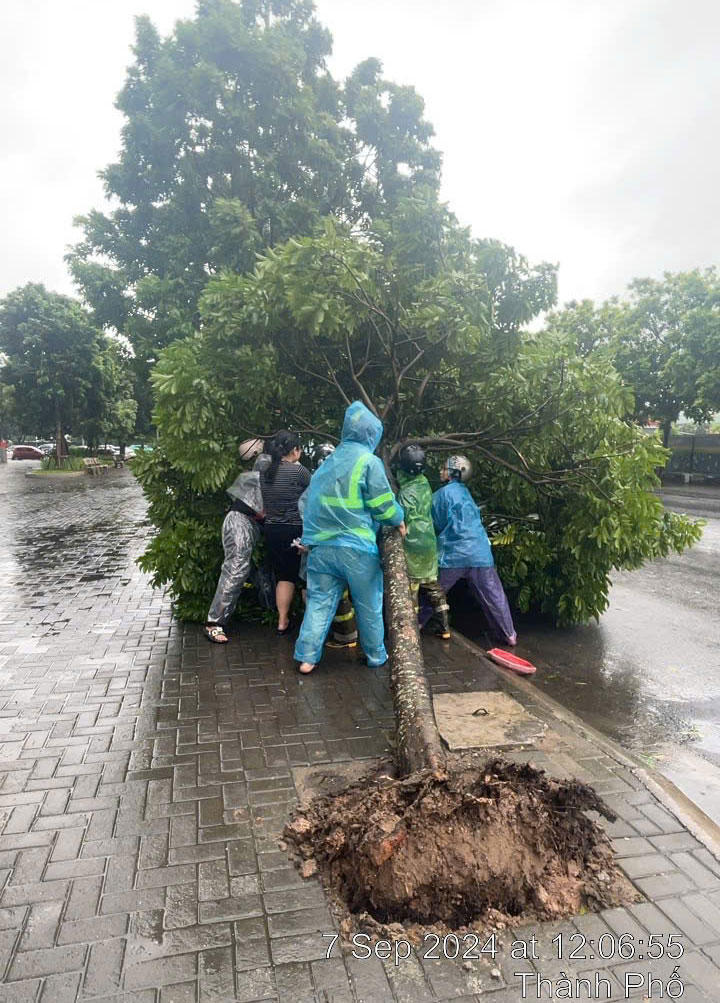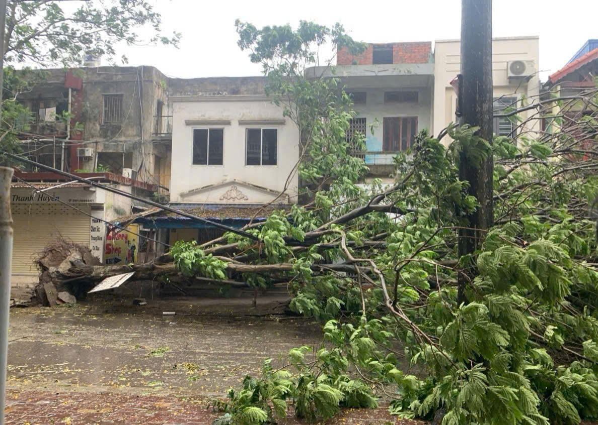 Tại Nam Định, phóng viên Thiên Kim ghi nhận ban đầu, bão số 3 đã làm đổ cây tại một số khu vực ở TP Nam Định. Các lực lượng chức năng đã nhanh chóng khắc phục, cắt dọn những cây bị đổ nhằm phân luồng giao thông, đảm bảo giao thông luôn thông suốt.