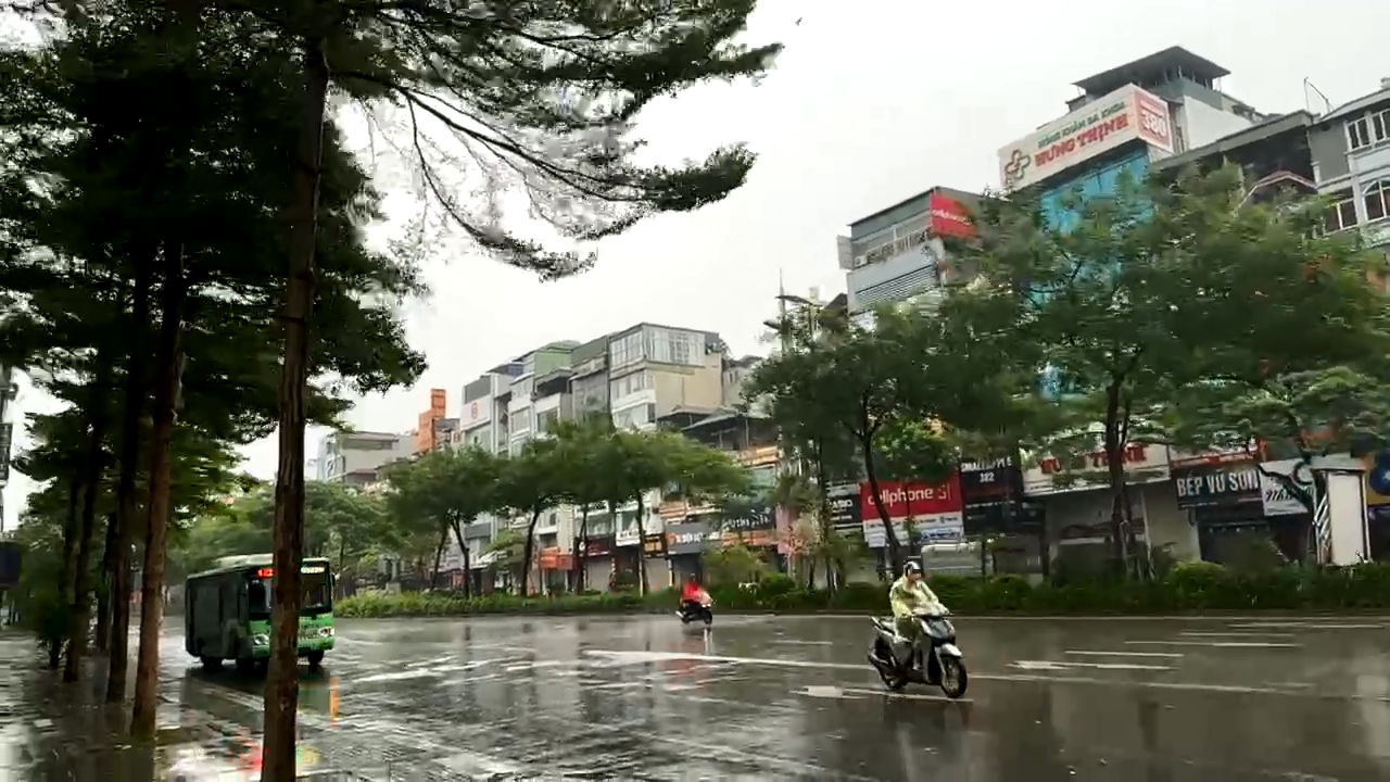 Mưa nặng hạt dần và gió mạnh dần ở Thủ đô Hà Nội. |
