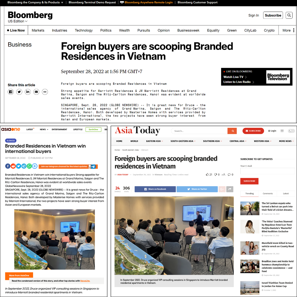 Hai dự án căn hộ hàng hiệu Việt Nam phủ sóng truyền thông Singapore và một vài thị trường trong khu vực. |