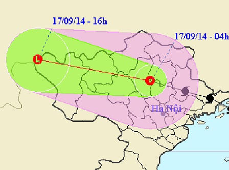 Hồi 4 giờ ngày 17.9, vị trí tâm áp thấp nhiệt đới ở vào khoảng 22,0 độ Vĩ Bắc; 105,5 độ Kinh Đông, trên đất liền khu vực Trung du Bắc Bộ. Sức gió mạnh nhất ở vùng gần tâm áp thấp nhiệt đới cấp 7 (tức là từ 50 đến 61 km/giờ), giật cấp 8, cấp 9.