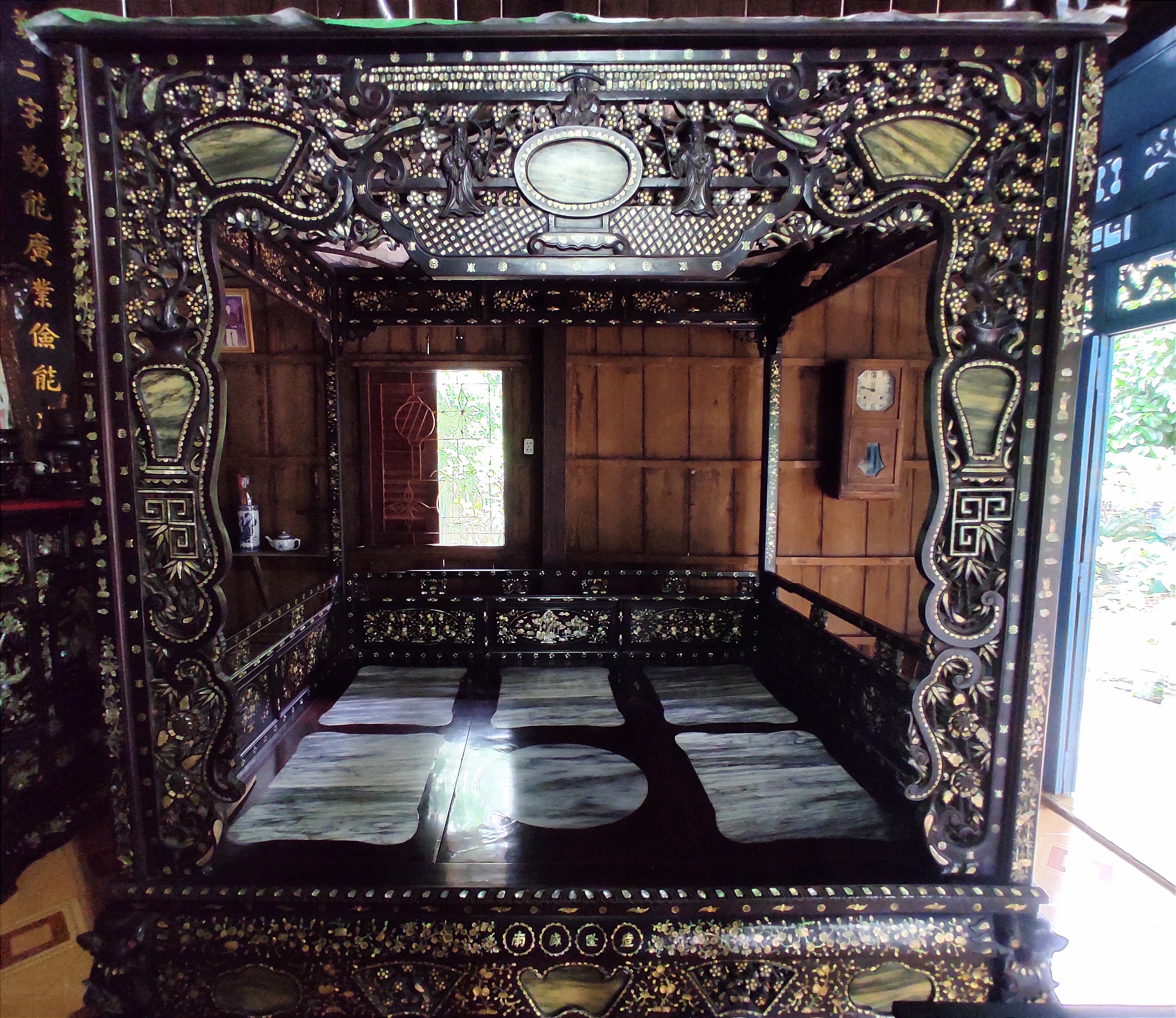 Chiếc long sàng có tuổi đời hơn trăm năm được nhiều người trả giá 600 triệu nhưng ông Chẳng nhất quyết không bán. |