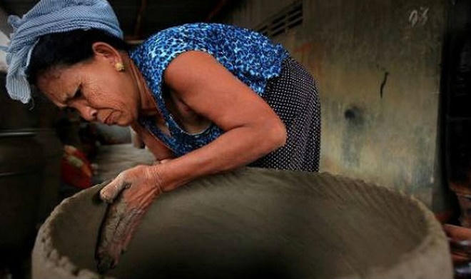 Tại bảo tàng nghề của làng gốm Bàu Trúc huyện Ninh Phước tỉnh Ninh Thuận, nghệ nhân Đàng Thị Lực vừa thoăn thoắt nhào nặn tảng đất cho nhuyễn rồi khéo léo tạo hình cho chiếc bình hoa. Đôi bàn tay gầy đen của bà vê nhịp nhàng, thoăn thoắt biến khối đất thành hình tròn, rồi ấn đầu ngón tay cái vào miệng bình.