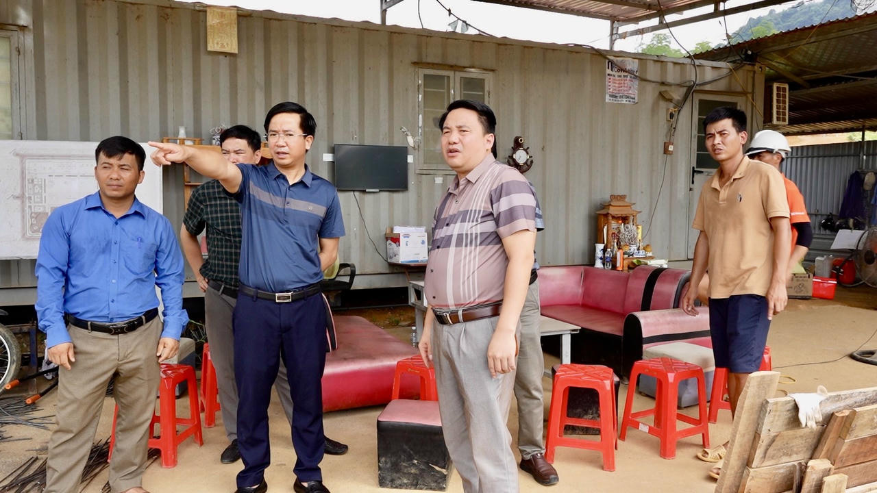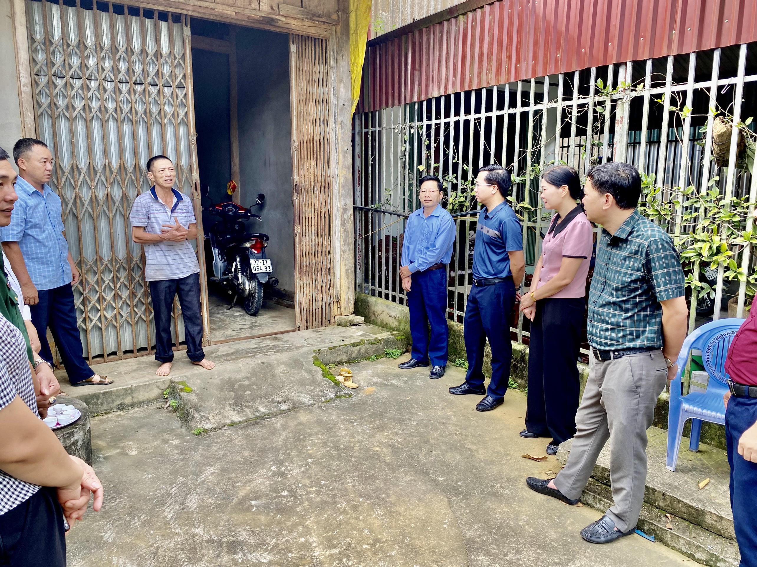Ông Trần Minh Sáng, Bí thư Huyện ủy Bảo Thắng và đoàn công tác đi kiểm tra thực tế công tác xóa nhà tạm tại các xã, thị trấn trên địa bàn huyện. |