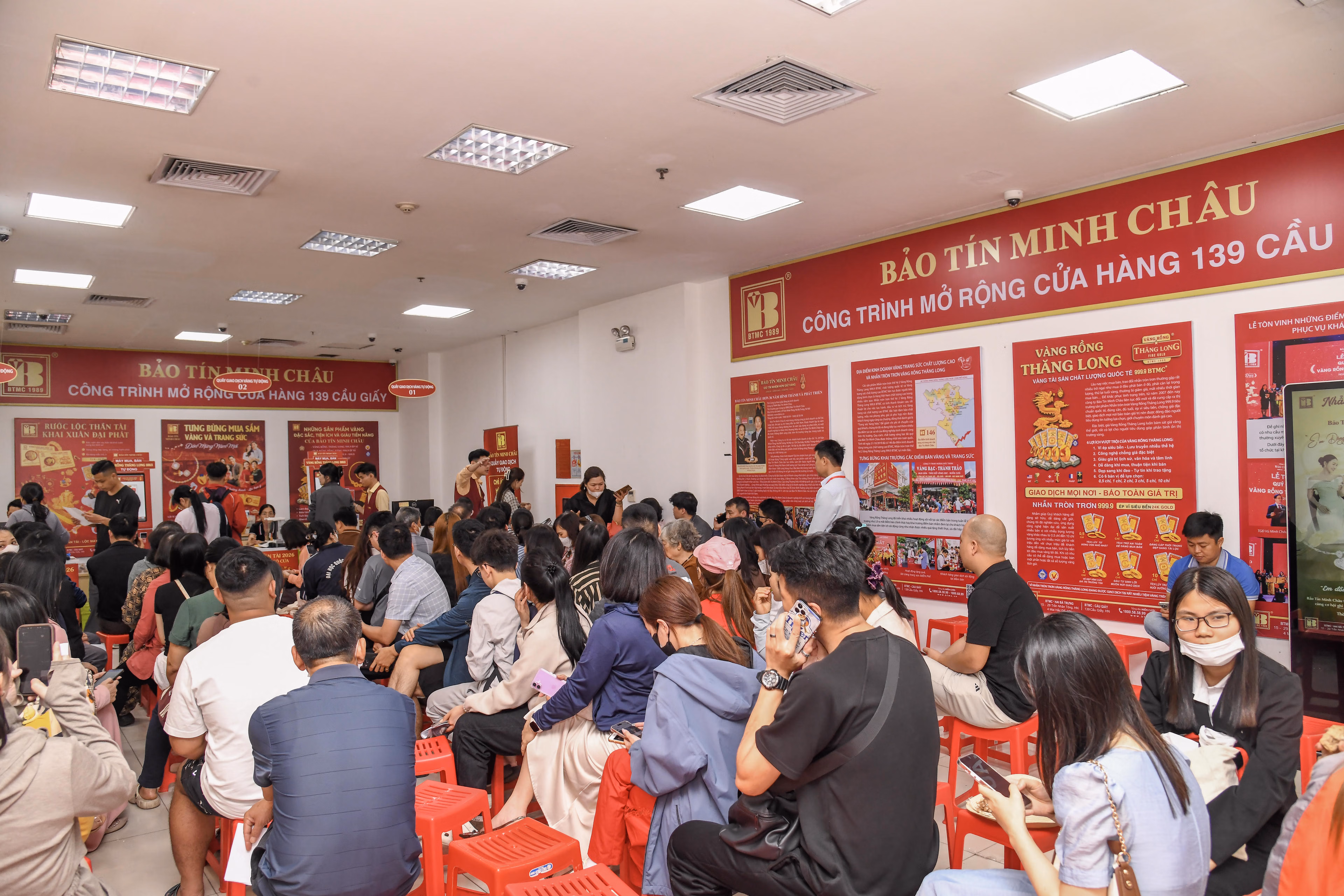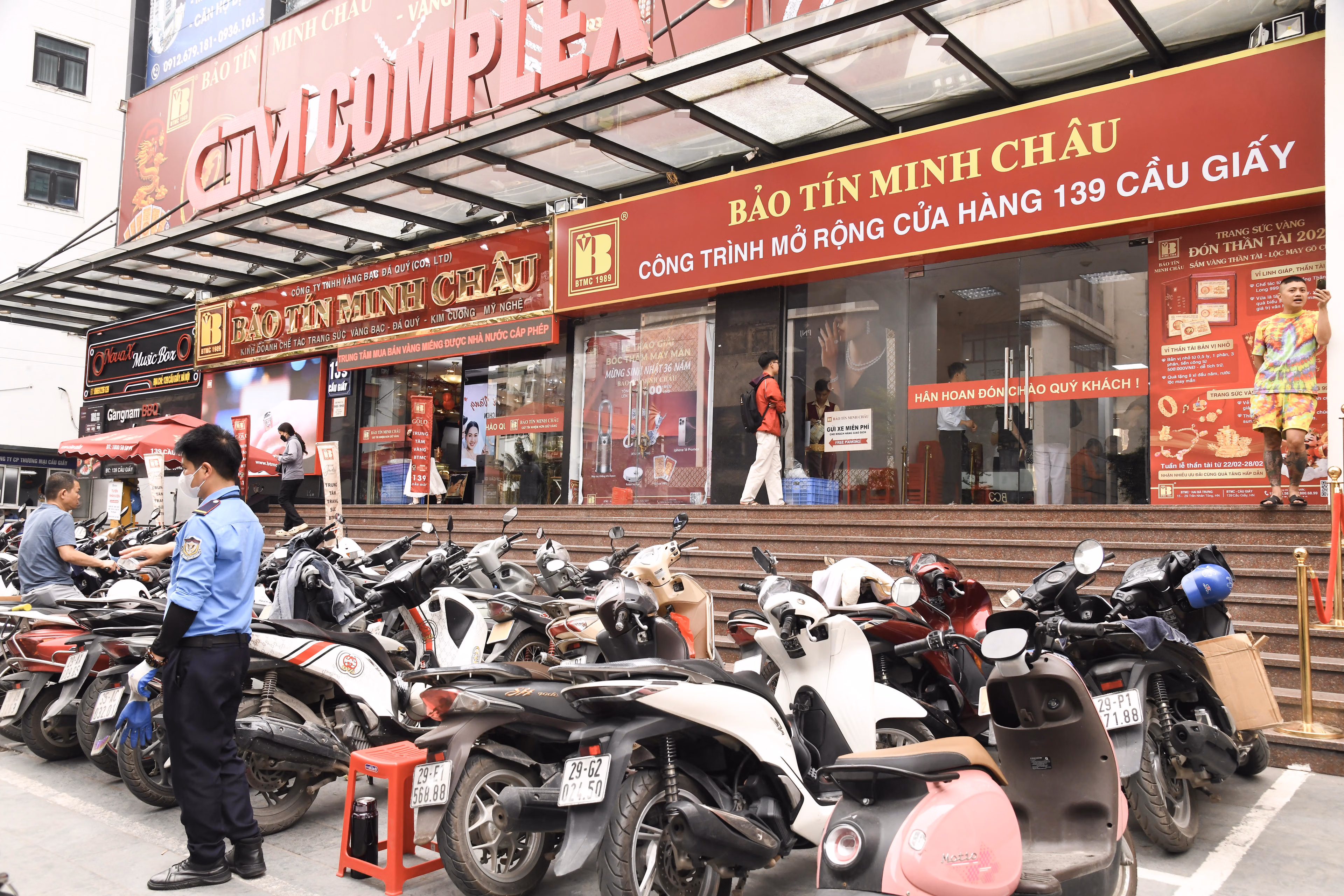 Không chỉ các cửa hàng Bảo Tín Minh Châu trên phố Trần Nhân Tông, hoạt động giao dịch tại cửa hàng Bảo Tín Minh Châu ở cơ sở 139 Cầu Giấy cũng hoạt động ổn định. Người dân chủ yếu đến mua vàng và nhận theo giấy hẹn trước đó, tâm lý thoải mái.