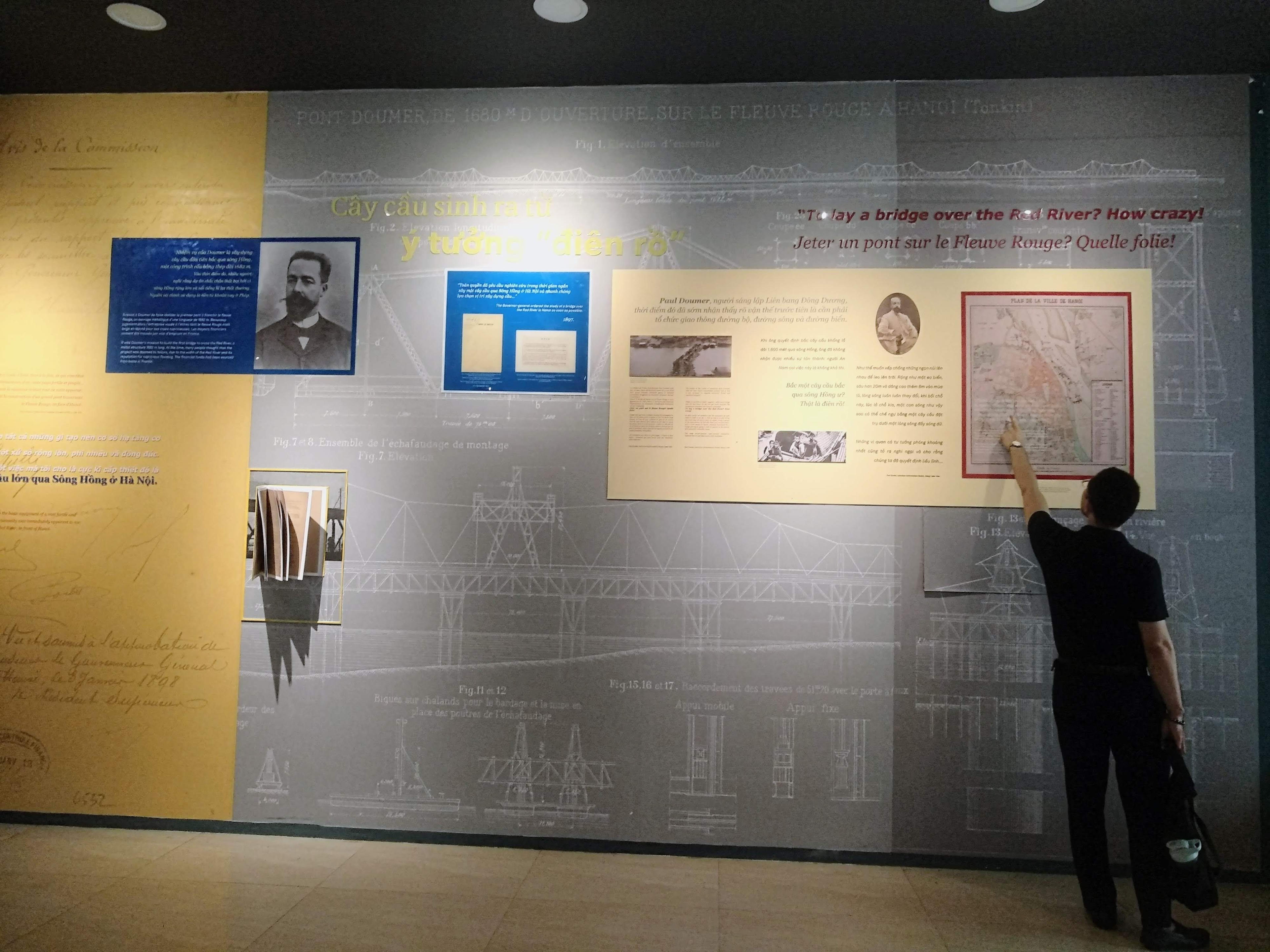 Du khách tìm hiểu về di sản tại Triển lãm “Cầu Long Biên - Chứng nhân lịch sử” ở Trung tâm Lưu trữ quốc gia I. (Ảnh: Đỗ Trang) |