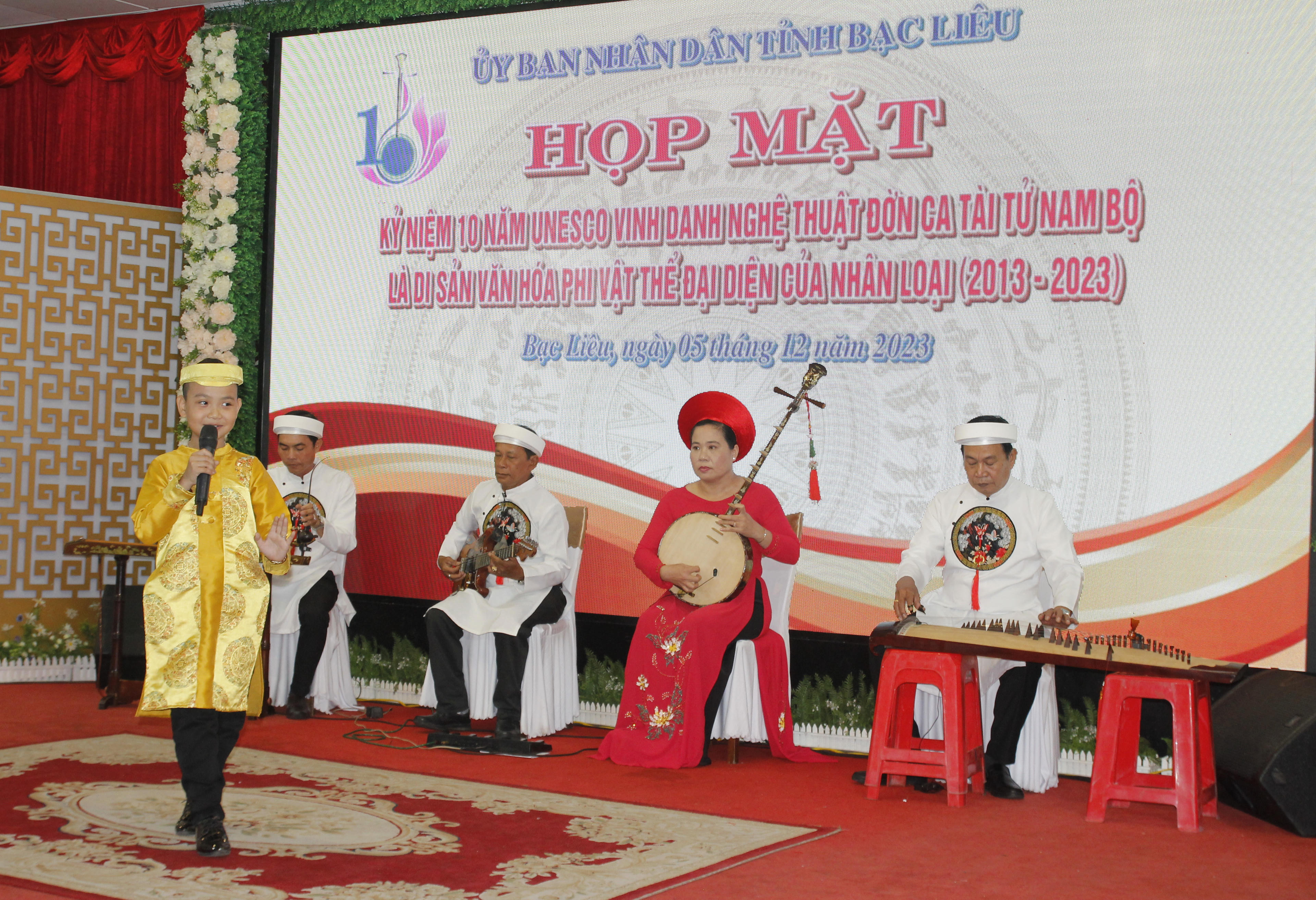 Phát biểu kỷ niệm 10 năm UNESCO vinh danh Nghệ thuật Đờn ca tài tử Nam Bộ, ông Phan Thanh Duy – Phó Chủ tịch UBND tỉnh Bạc Liêu, nhấn mạnh: “Chúng ta rất tự hào về những bậc tiền bối Nam Bộ nói chung và Bạc Liêu nói riêng đã có công sáng tạo và truyền dạy nghệ thuật đờn ca tài tử Nam Bộ. Đây là loại hình nghệ thuật truyền thống độc đáo của dân tộc, việc giữ gìn, phát huy, làm cho loại hình nghệ thuật này ngày càng phát triển và mãi trường tồn không đơn giản là nhiệm vụ của ngành Văn hóa mà còn là trách nhiệm của các cấp, các ngành và của các thế hệ Nghệ nhân đờn ca tài tử cũng như người mộ điệu.