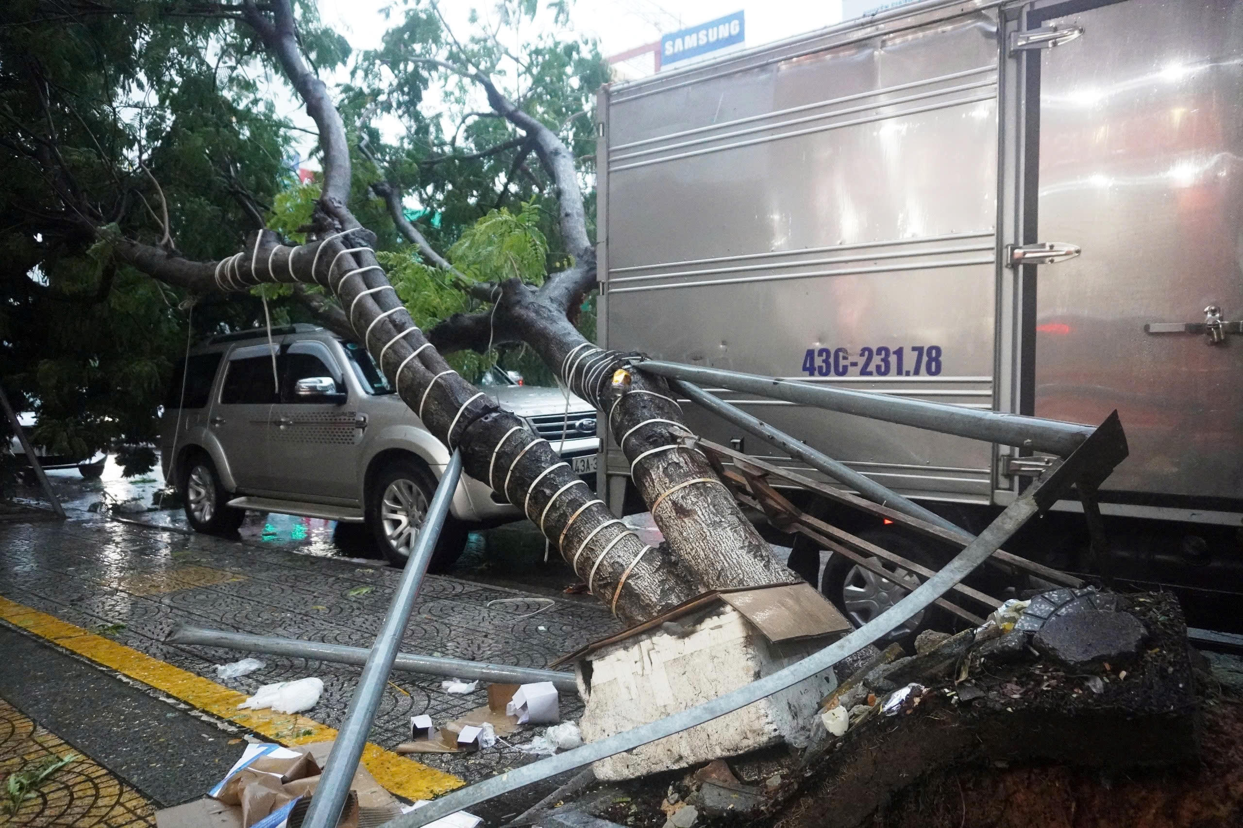 Cây xanh ở TP Đà Nẵng ngã đổ gây hư hỏng xe ô tô. (Ảnh: Công Huy) |