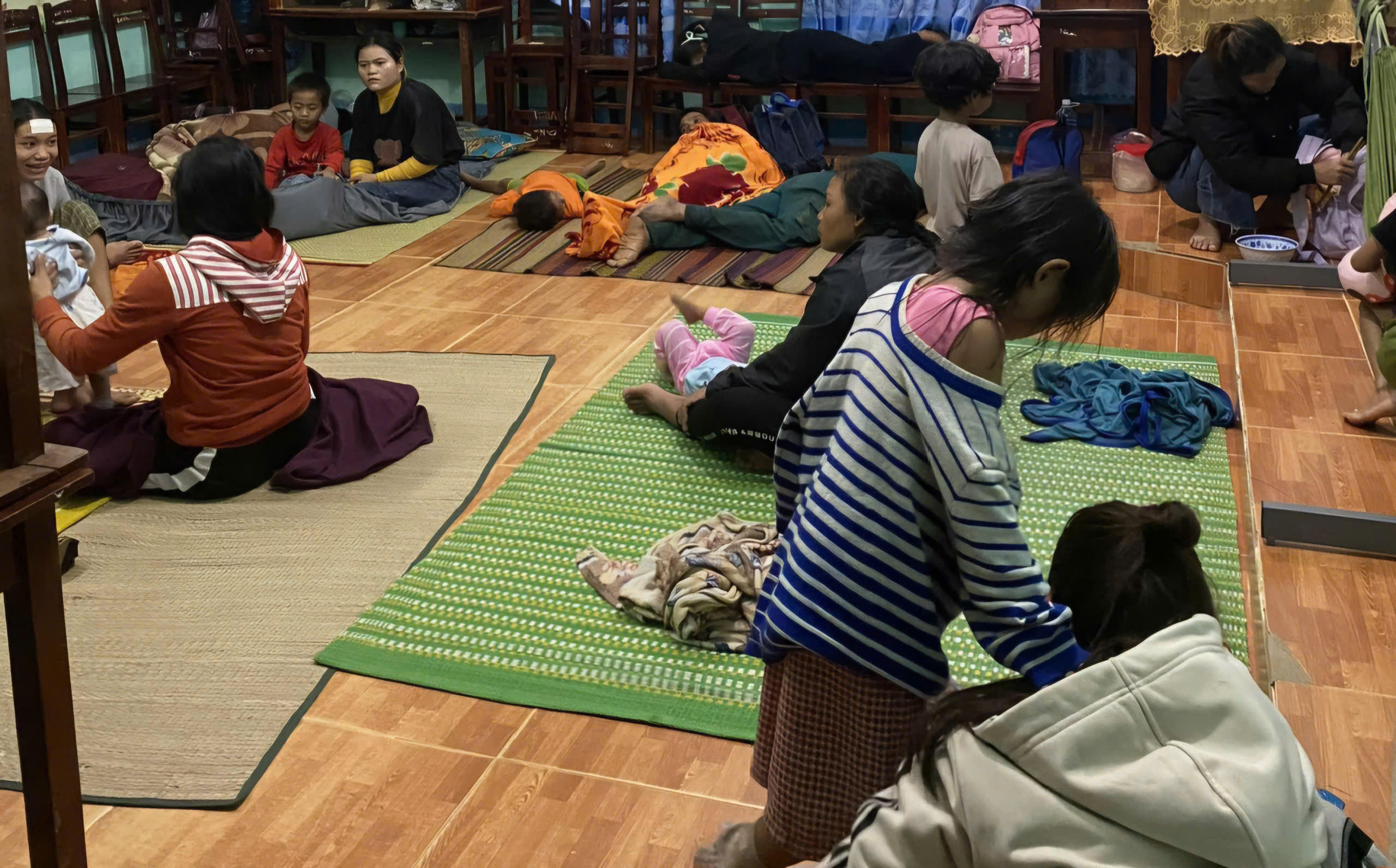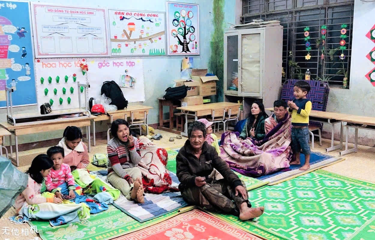 Người dân khu dân cư Nà Nổ được đưa đến nơi an toàn để tránh sạt lở. (Ảnh: C.H) |