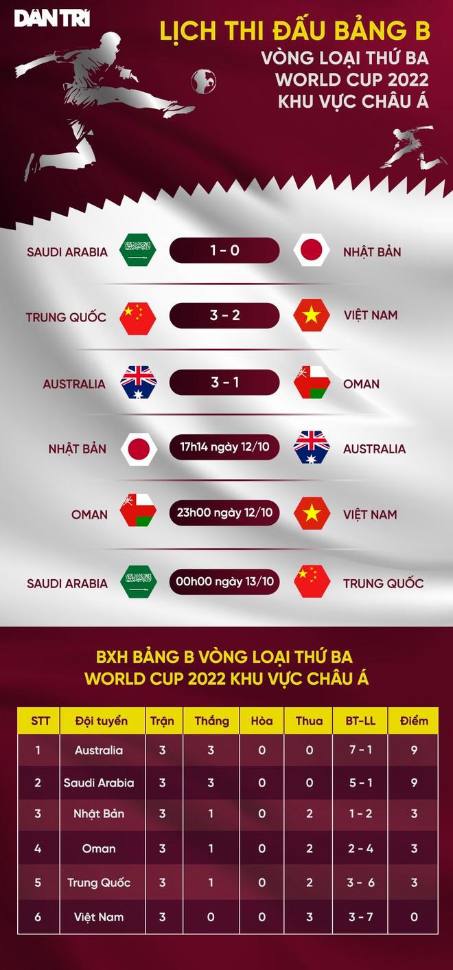 Cũng trong hôm nay, đội tuyển Trung Quốc sẽ có chuyến hành quân tới sân của Saudi Arabia, đội bóng toàn thắng sau 3 trận đấu. Sau chiến thắng trước đội tuyển Việt Nam, thầy trò HLV Li Tie đã sống lại hy vọng và đặt mục tiêu giành 3 điểm trước đội bóng Tây Á.
