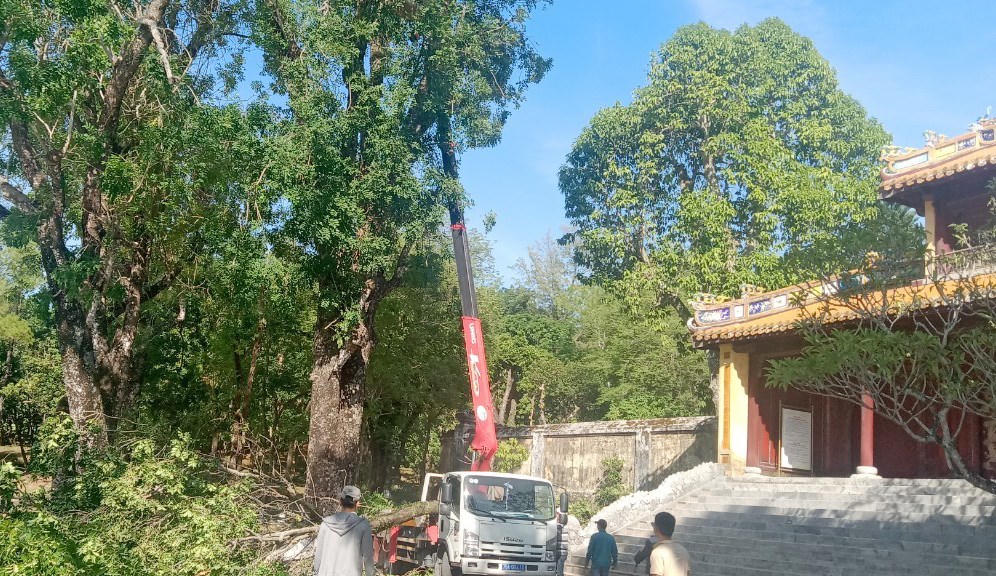 Triển khai cắt tỉa cây xanh trước mùa mưa bão tại di tích lăng Đồng Khánh |