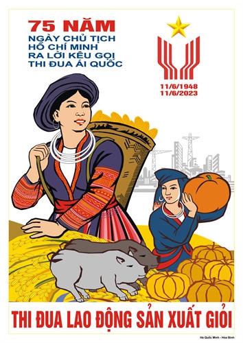 Một bức tranh cổ động trong Triển lãm tranh cổ động tuyên truyền kỷ niệm 75 năm Chủ tịch Hồ Chí Minh ra Lời kêu gọi Thi đua ái quốc tháng 6.2023. Nguồn Cuc VHCS |