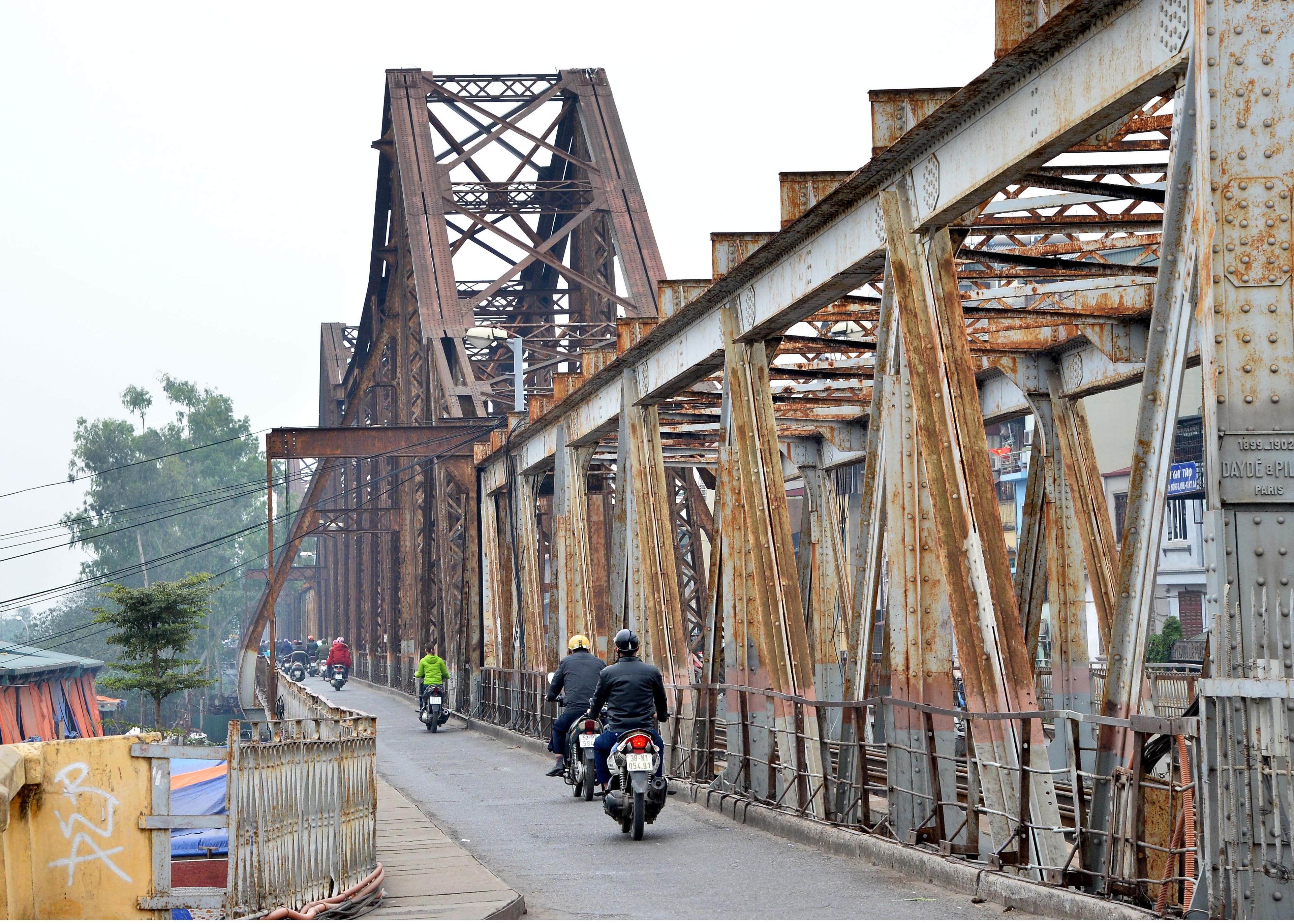 Cầu Long Biên vốn là một trong những “chứng nhân lịch sử” của Hà Nội. Cầu có tuổi đời hàng trăm năm, được các chuyên gia xếp loại cầu “yếu”. Trải qua hơn 120 năm, hiện tại, cầu chỉ còn 13 nhịp dầm Pháp cũ, nhiều nhịp bị cắt ngắn so với nguyên bản. Đánh giá cầu có các nhịp kết cấu thép bắt đầu han gỉ, bị ăn mòn và hai bên đầu cầu đã được cắm biển cấm phương tiện quá tải. Hàng năm, cần tốn vài tỷ đồng để tu sửa cầu, “vá víu” những “ổ trâu, ổ gà”. Vậy nhưng, mỗi ngày cầu đang “oằn mình” gánh cả tấn phương tiện đi lại, gây ra rất nhiều hiểm họa tiềm ẩn cho người tham gia giao thông.