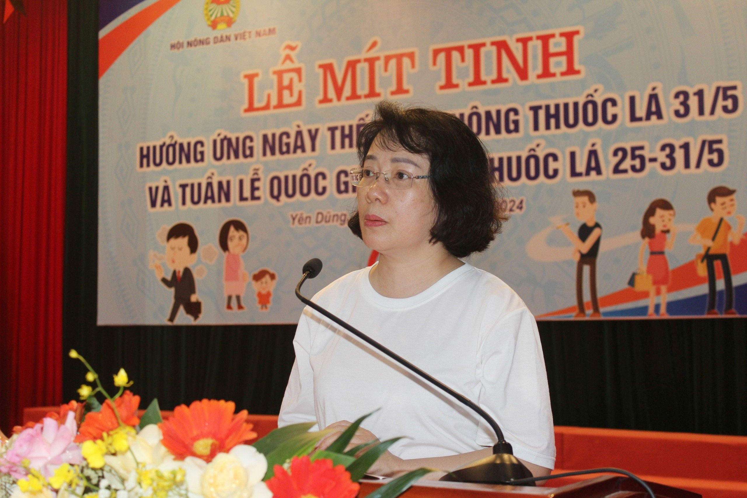 Ngày 22/5, tại Trung tâm văn hóa huyện Yên Dũng, Tỉnh Bắc Giang, Trung ương Hội Nông dân Việt Nam phối hợp với Quỹ Phòng chống tác hại của Thuốc lá - Bộ Y tế tổ chức Lễ mít tinh hưởng ứng Ngày thế giới không khói thuốc lá 31/5/2024 và Tuần lễ Quốc gia không khói thuốc lá từ 25-31/5 năm 2024.