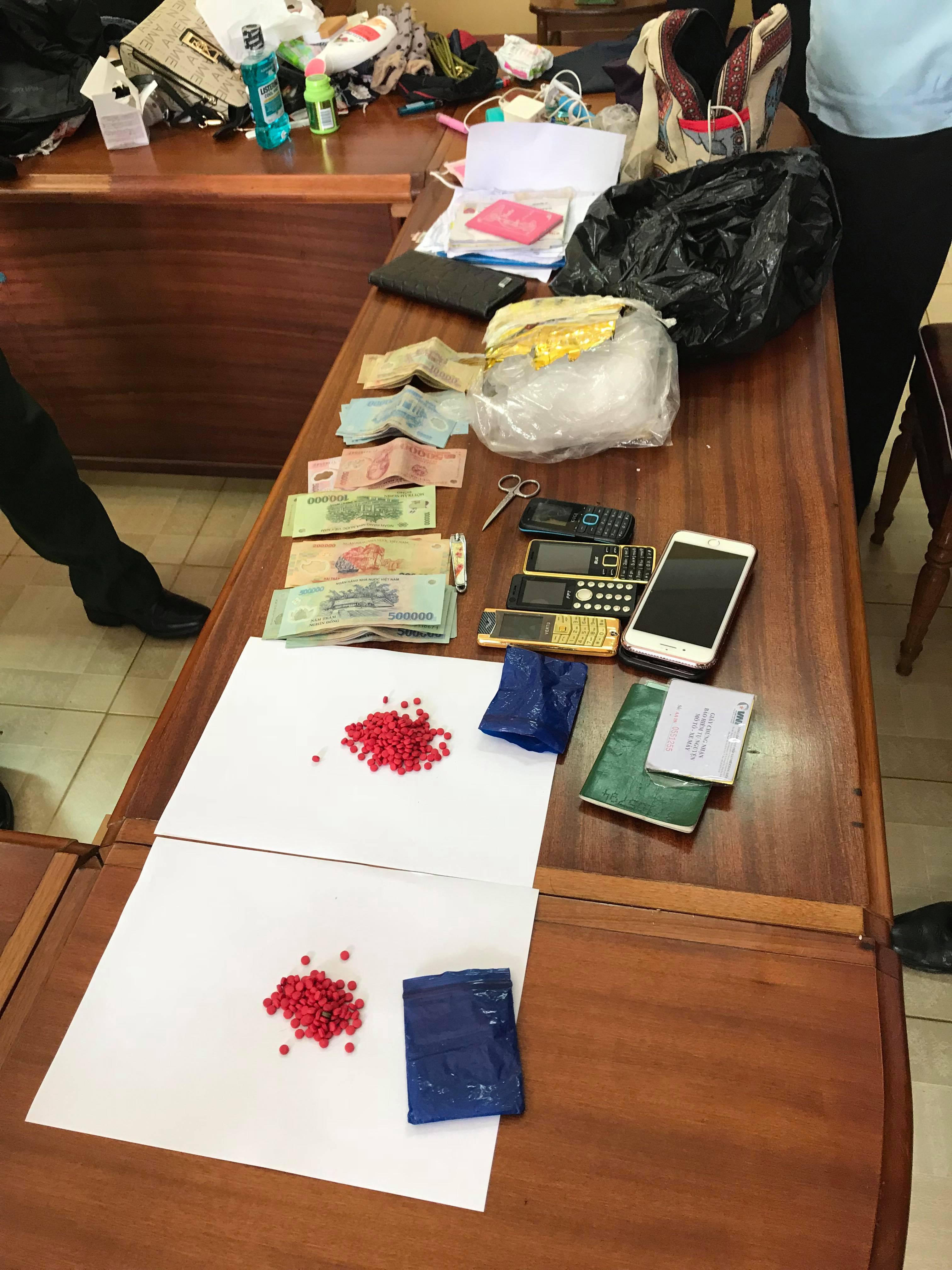 Tiếp tục khám xét trên người, phát hiện thêm gần 400 viên màu hồng dạng ma tuý tổng hợp.