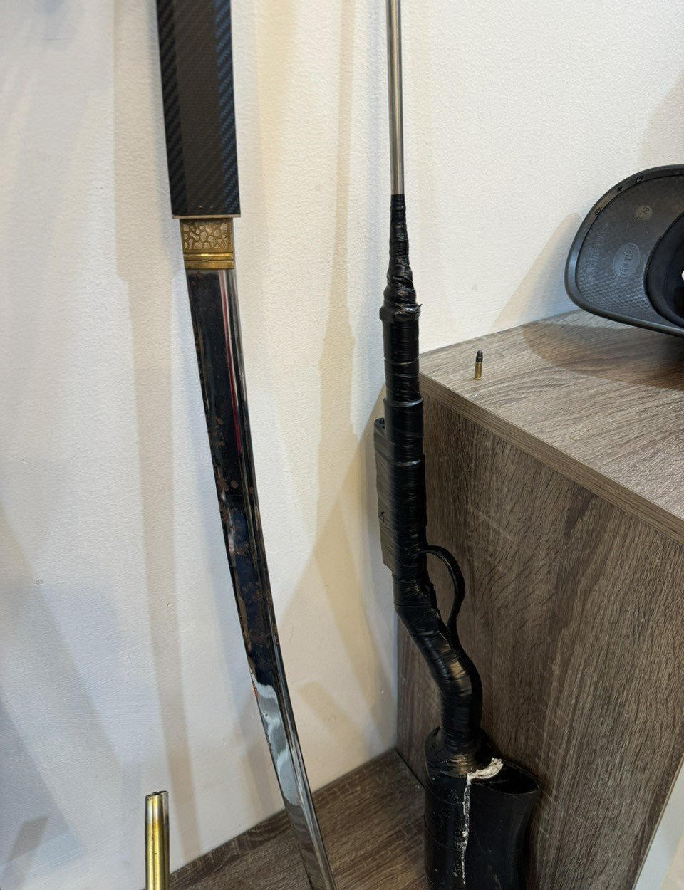Tại hiện trường, ngoài số ma túy, cơ quan công an còn phát hiện, thu giữ thêm 1 cây súng tự chế, 1 cây kiếm.