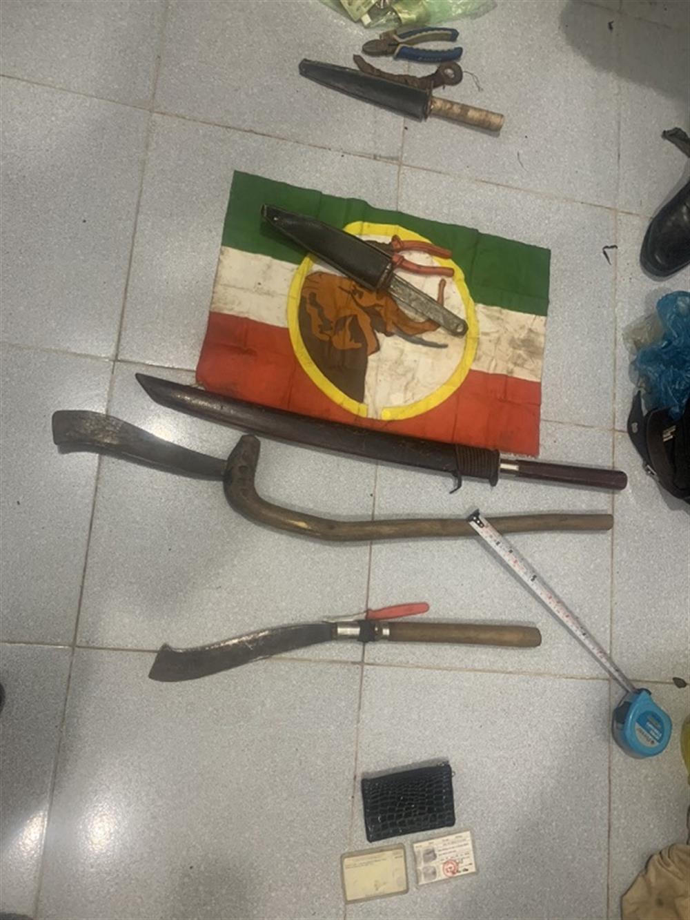 Tang vật thu giữ từ các đối tượng gồm nhiều con dao.