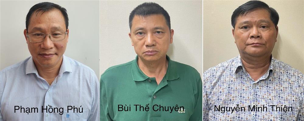 Các bị can (từ trái qua phải): Phạm Hồng Phú; Bùi Thế Chuyên; Nguyễn Minh Thiện. |