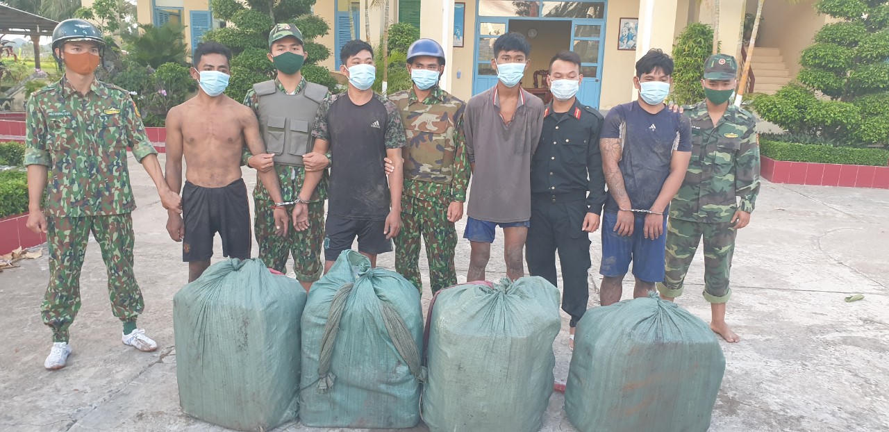 Trước đó, lúc 5h00 ngày 30/8/2020, trong quá trình thực hiện nhiệm vụ phòng chống dịch bệnh Covid-19, Tổ công tác của Đồn Biên phòng cửa khẩu quốc tế Hà Tiên phát hiện 4 người đi bộ vác 4 bao tải màu xanh có dấu hiện nghi vấn đi từ hướng Campuchia vào Việt Nam.