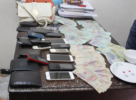 (PLO) - Sau gần 2 tuần lập chuyên án đấu tranh, cảnh sát hình sự Công an TP.Vinh (Nghệ An) ập vào bắt quả tang 9 đối tượng đang sát phát nhau trên chiếu bạc, thu giữ hơn 160 triệu đồng và nhiều điện thoại đắt tiền.