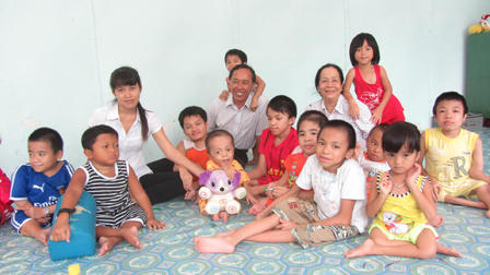 Trung tâm Kim Cương tươi đẹp (do ông Tôn Thất Hưng, 48 tuổi, nguyên giám đốc Công ty TNHH Cá Sấu Hoa Cà, thành lập) ẩn mình trong một con hẻm nhỏ, quanh co trên đường Hà Huy Giáp (phường Thạnh Xuân, quận 12, TP.HCM). Những đứa trẻ đang miệt mài luyện tập yoga bỗng vui vẻ hẳn lên khi thấy ông Hưng mở cửa đi vào. Người đàn ông tóc đã điểm vài sợi bạc nở nụ cười, hiền hậu hỏi han sức khỏe từng bé.