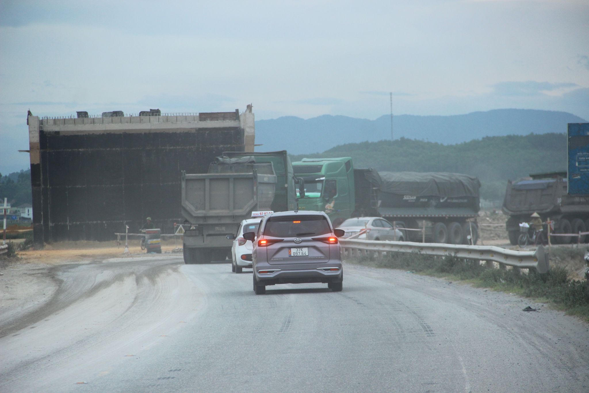 Đơn cử, điểm giao nhau giữa Quốc lộ 7A và cao tốc Bắc - Nam thuộc địa bàn huyện Diễn Châu, luôn trong tình trạng bụi mù do phương tiện qua lại liên tục, khiến tầm nhìn của người tham gia giao thông bị ảnh hưởng, nguy cơ gây tai nạn. Tuy nhiên, không thấy người của đơn vị thi công ra hướng dẫn hay biển cảnh báo nguy hiểm, cũng như biển chỉ dẫn giảm tốc độ tại điểm này.