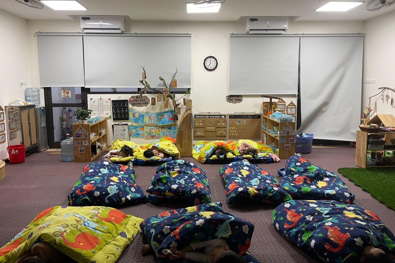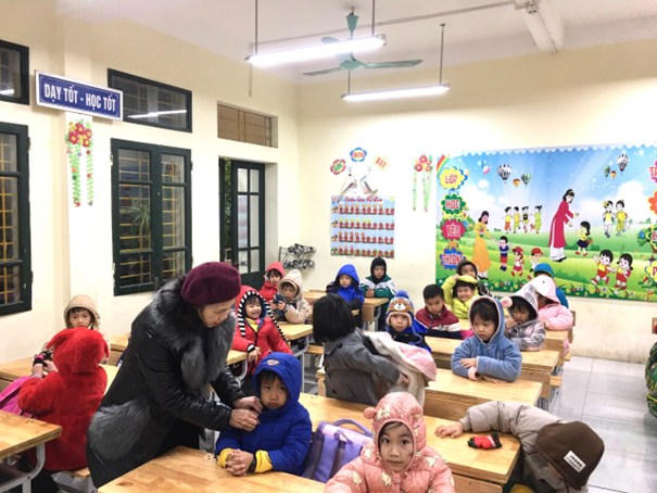 Tại Trường mẫu giáo Mầm non A (quận Ba Đình), nhà trường đã tuyên truyền tới phụ huynh cách chống rét cho trẻ trước khi đến trường và ở nhà. Các lớp học đều được che chắn kín gió, có đủ thảm xốp, chăn ấm, nước ấm, điều hòa 2 chiều, bình nóng lạnh...