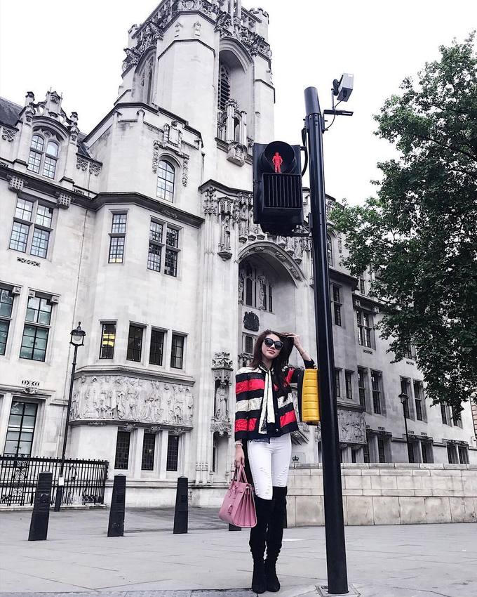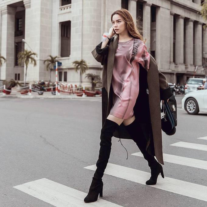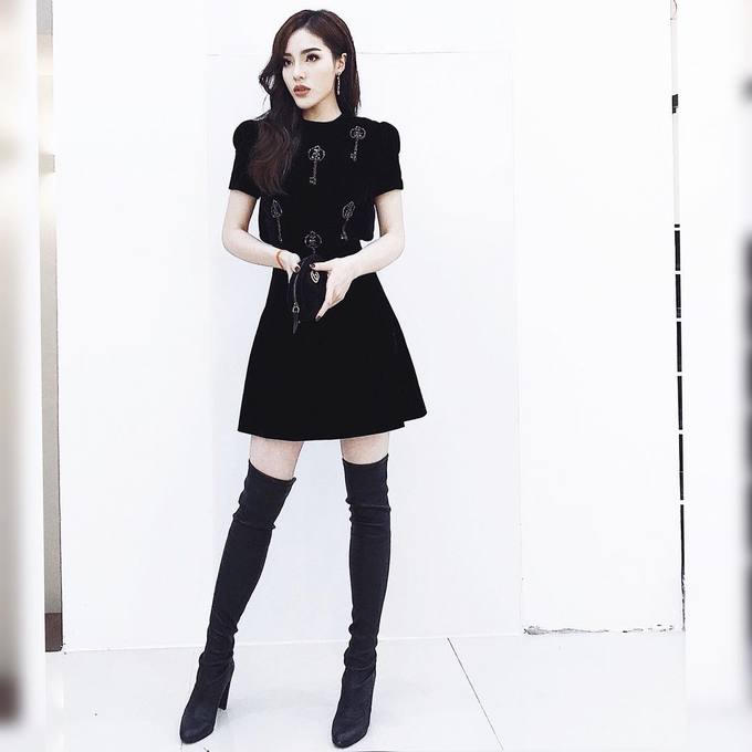 Boots ôm sát chân giúp Kỳ Duyên khoe trọn đôi chân thon dài và toát lên vẻ sang chảnh.