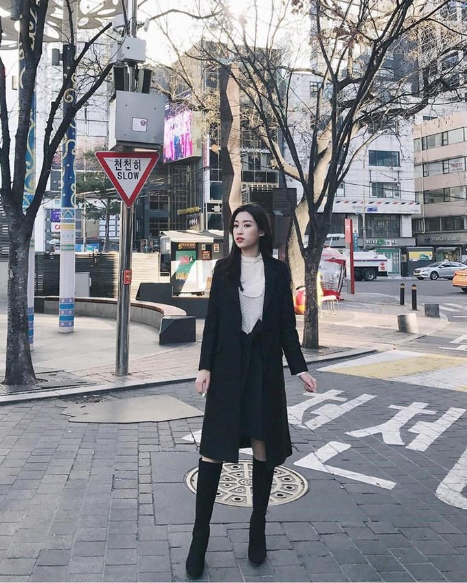 Áo khoác dáng dài và over the knee boots là một trong những cách mix phổ biến nhưng luôn đạt hiệu quả thẩm mỹ cao, đem đến tổng thể sang trọng, quyến rũ.