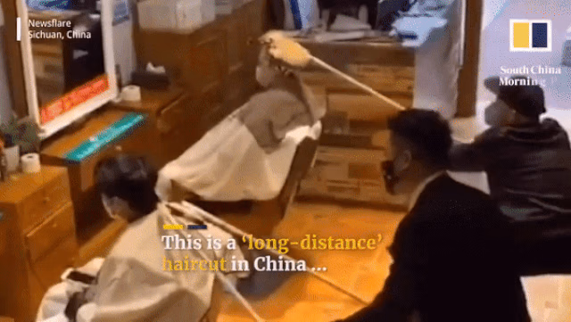 Giữa mùa dịch Covid-19, nhiều trào lưu hay dịch vụ lạ đời ở Trung Quốc cũng xuất hiện. Từ việc không bắt tay nhau, mua hàng nhưng không có người bán, cho tới giao hàng bằng cách ném về phía người khác, đang được nhiều người dân Trung Quốc áp dụng. Và mới đây nhất lại là dịch vụ cắt tóc gội đầu kiểu mùa dịch.