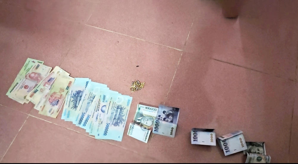 Công an thu giữ tang vật là tiền, nhẫn, dây chuyền. |