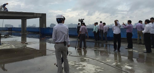 Cùng lúc đó, đại diện chủ đầu tư và đại diện các cơ quan chức năng, thanh tra xây dựng và trực tiếp hai Phó giám đốc sở Xây dựng TP Hà Nội đã có mặt tại sân thượng toà nhà.