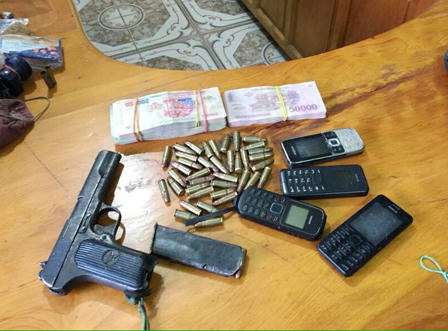 Qua kiểm tra tại chỗ đối tượng, tổ tuần tra đã phát hiện đối tượng mang 1 khẩu súng K54 + 44 viên đạn; 2 dao nhọn, hơn 32 triệu đồng và 4 ĐTDĐ.