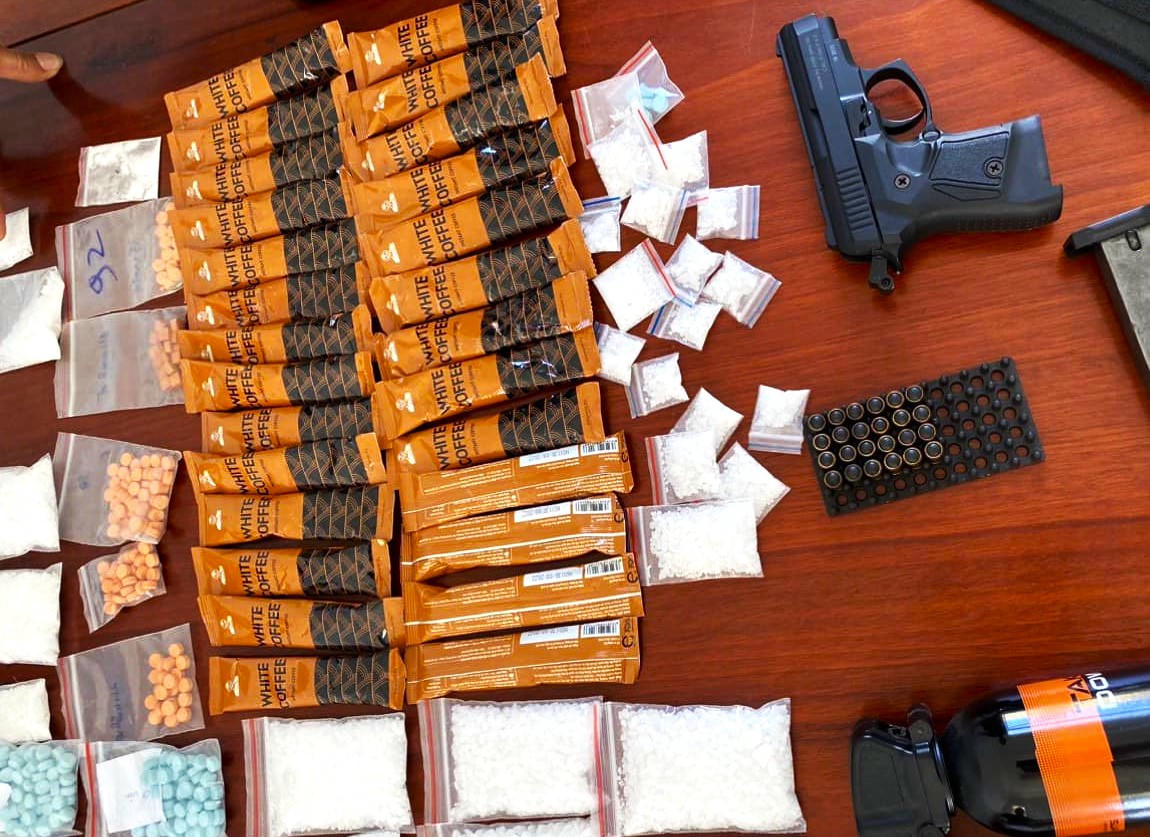Sau quá trình điều tra, chiều 14/6, xác định Huy vừa mua lượng lớn ma túy đưa về cất giấu nên Công an quận Ngũ Hành Sơn đã đột kích, bắt giữ Huy. Tang vật thu giữ gồm 1kg ma túy tổng hợp loại ketamine; 1.000 viên (0,7kg) ma túy dạng thuốc lắc, 27 gói (hơn 0,3kg) ma túy được che giấu bên trong gói cà phê, cùng với 1 xe máy BKS 43H1-349.96, điện thoại iPhone, 130 triệu đồng và nhiều trang sức.
