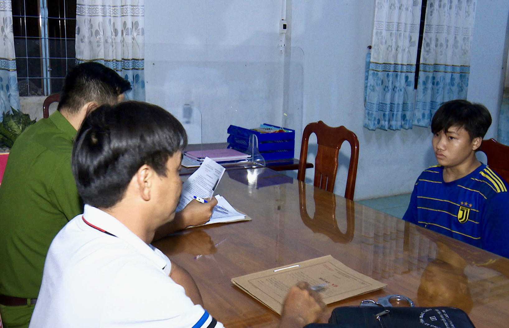 Đối tượng Nguyễn Hoàng Khang tại Cơ quan Công an. |