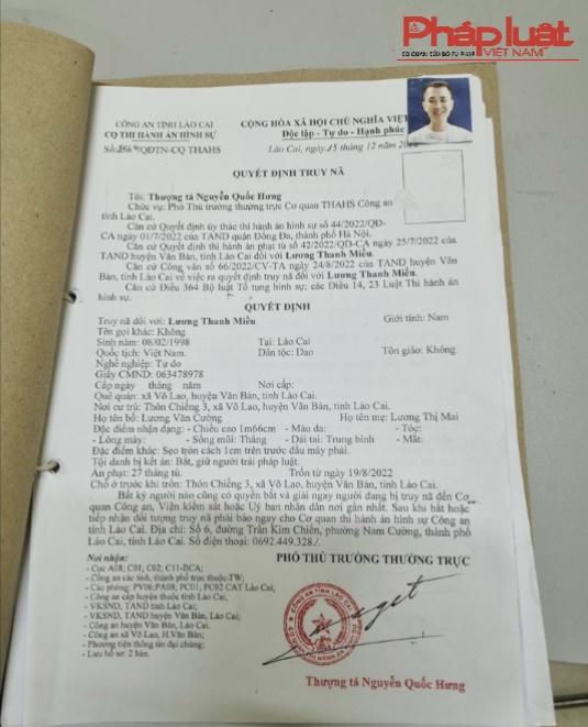 Ngày 15/12/2022, Cơ quan thi hành án hình sự, Công an tỉnh Lào Cai đã ra quyết định truy nã đối với Lương Thanh Miều. Lợi dụng mối quan hệ, Miều đã di chuyển qua nhiều địa phương, để sinh sống, rồi sau đó Miều đã tìm đến phòng trọ của bạn gái ở phường Phan Si Păng, thị xã Sa Pa để lẩn trốn, nhưng chưa được bao lâu Miều đã bị quần chúng nhân dân phát giác, thông tin cho lực lượng Công an bắt giữ kịp thời./.